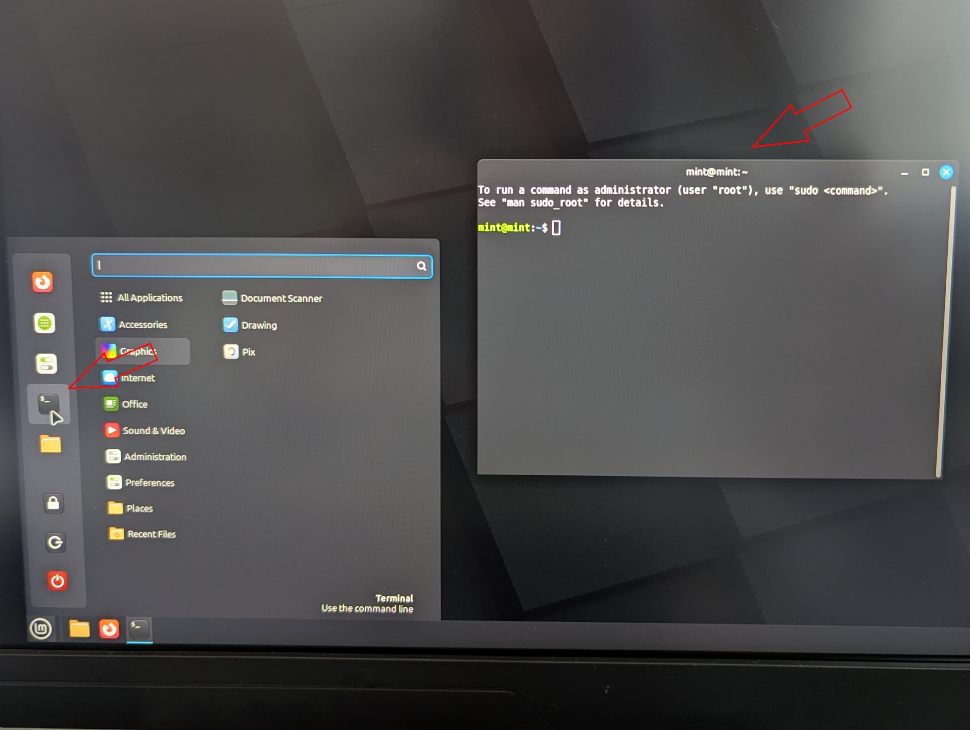 Mint'te terminali açın ve şunu yazın: