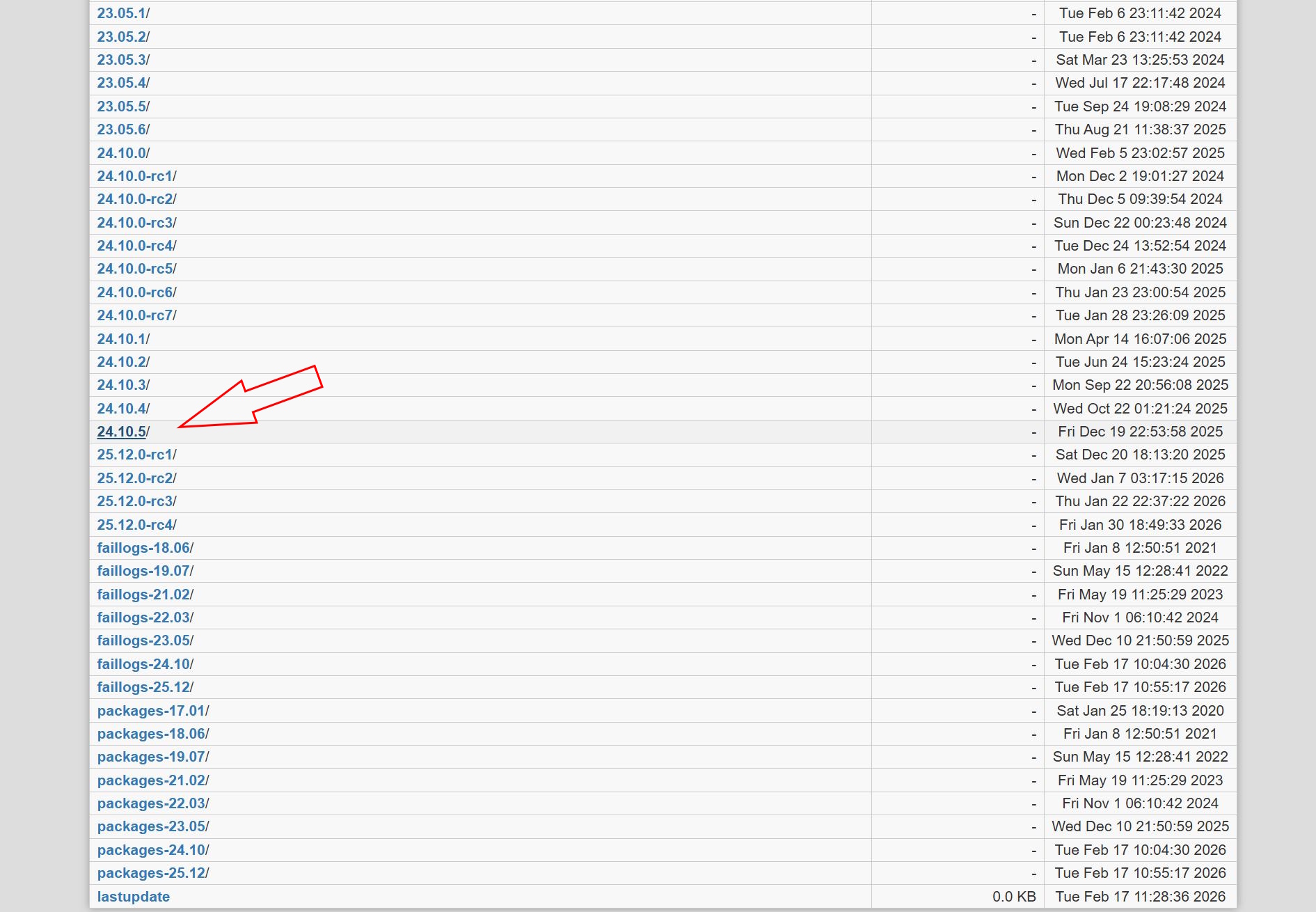 İlk olarak, OpenWRT imajını indirmeniz gerekecektir. Şubat 2026 itibarıyla en son kararlı sürüm 24.10.5 sürümüdür.