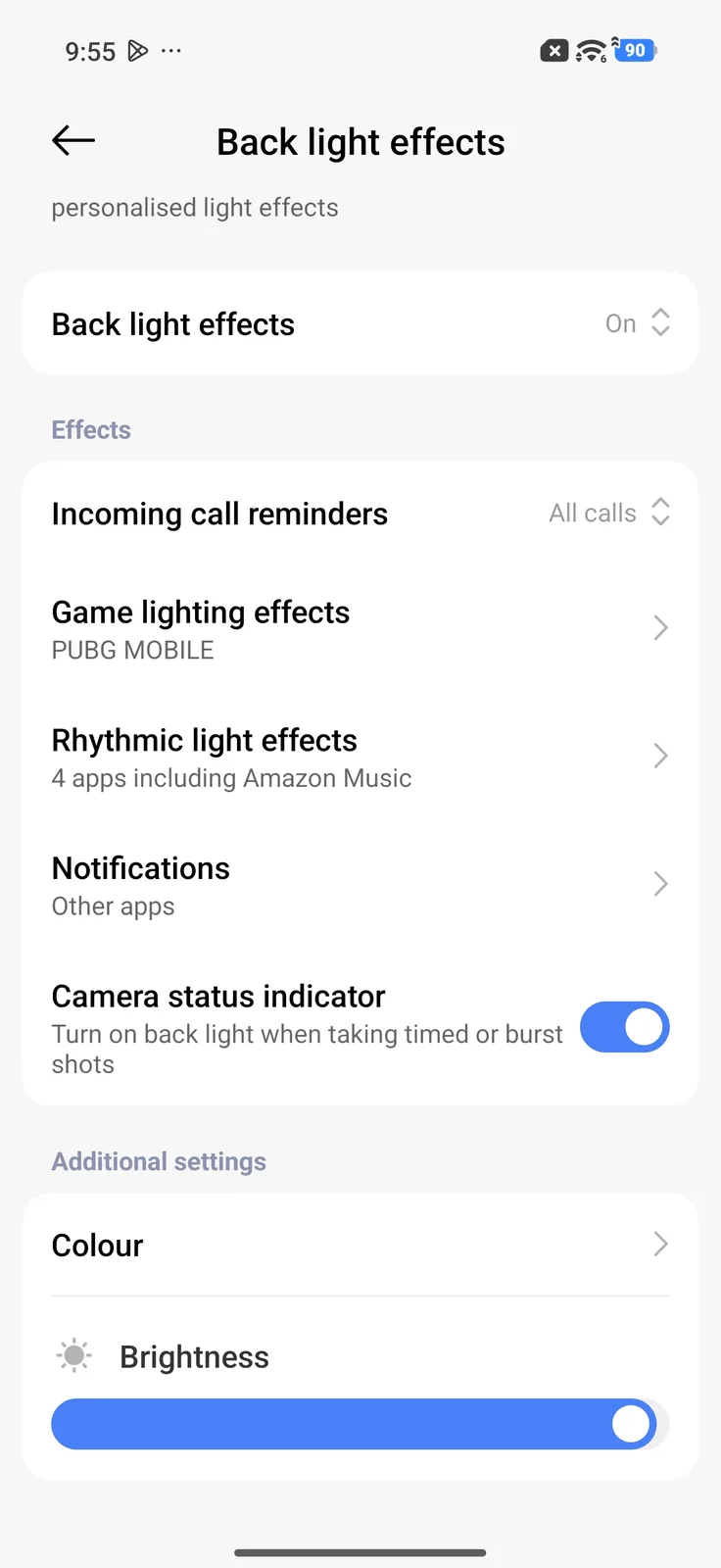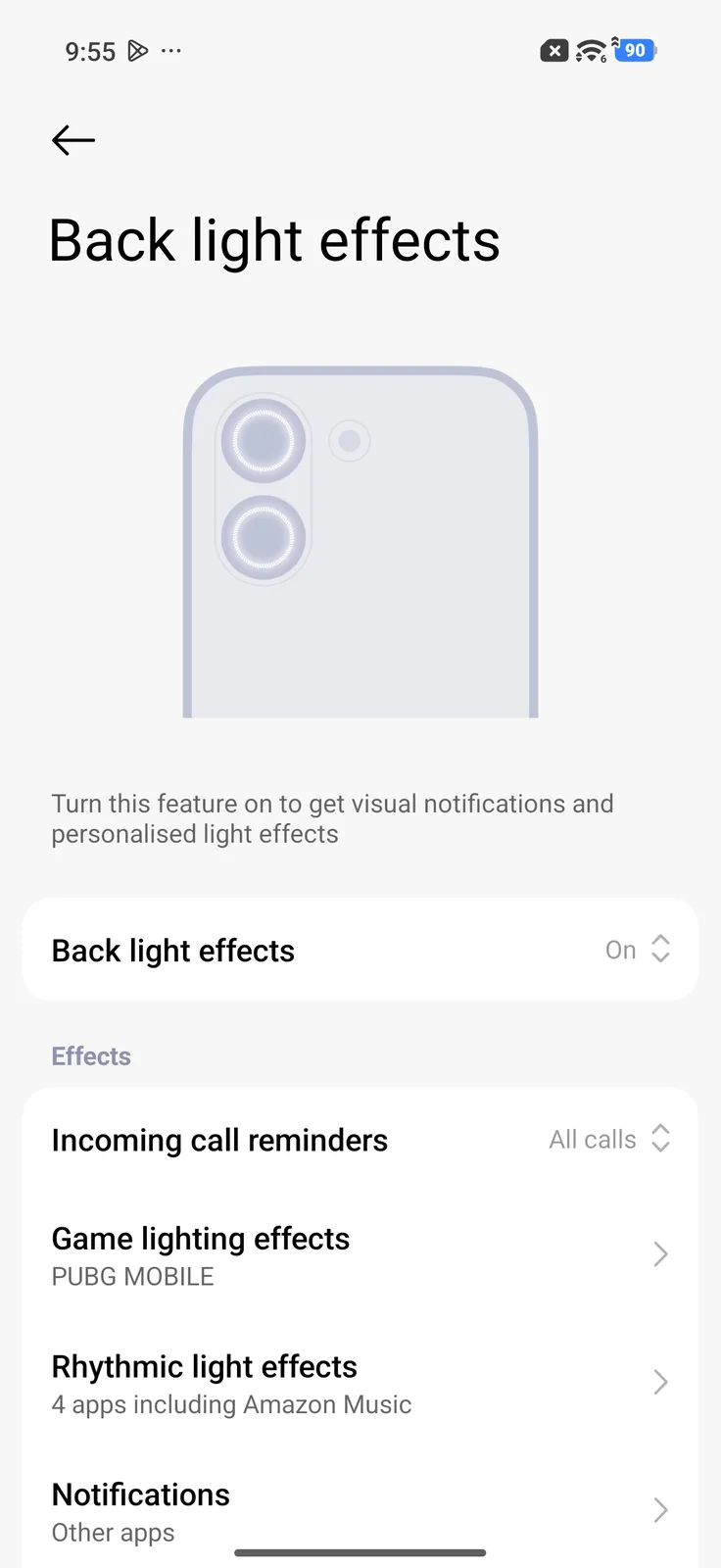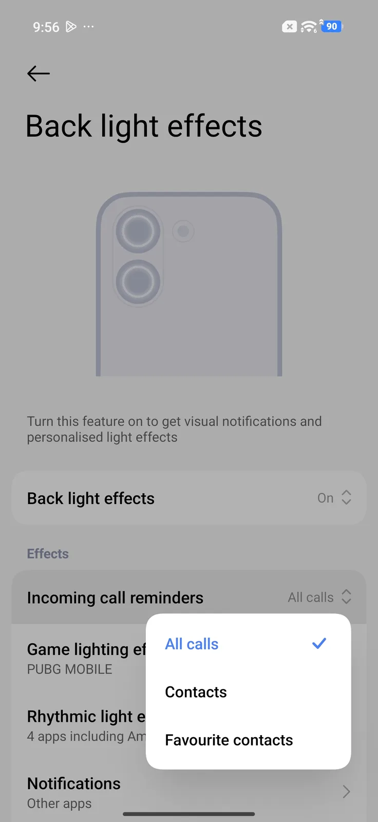 Ayarlar menüsü, belirli uygulamalara veya kişilere özel ışık animasyonları atamak için çok sayıda seçenek sunuyor.