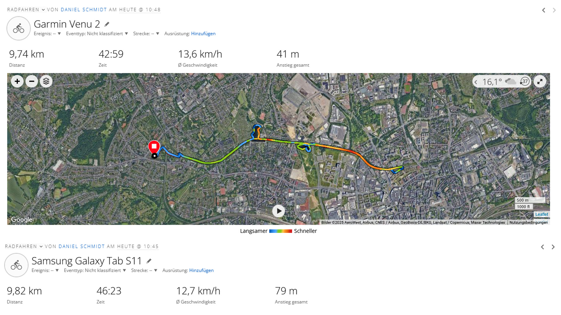 Doğruluğunu test etmek için Galaxy tableti Garmin Venu 2 ile bir bisiklet sürüşüne çıkardık. Bazı sapmalar fark edilse de Tab S11 rotamızı güvenilir bir şekilde haritaladı.
