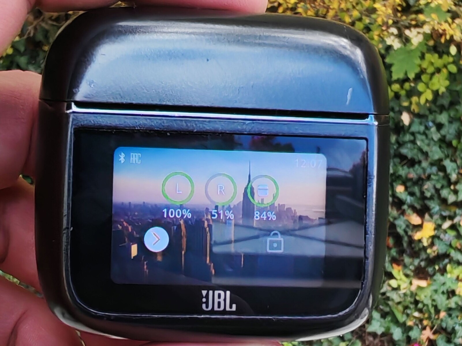 Bu noktada, sadece daha iyi fotoğraf kalitesi sundukları için JBL'nin resmi görüntülerini ekliyoruz. Bunlar, şarj kutusunda bulunan işlevlerin çeşitliliğini doğru bir şekilde gösteriyor, ancak gerçek ekran deneyimi doğal olarak şahsen daha az keskin ve canlı.