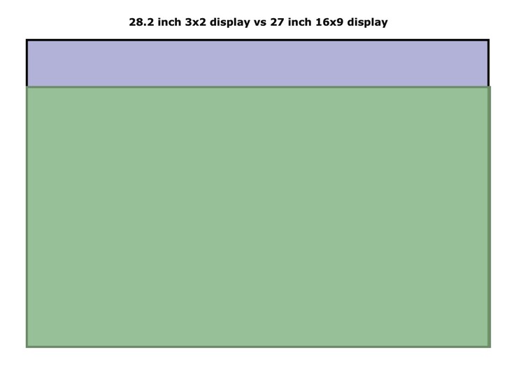 Benzersiz en-boy oranı, kullanıcıların elektronik tablolar ve belgeler arasında hızlı bir şekilde gezinmesini sağlayan çok sayıda dikey alana izin verir. Yukarıdaki görüntüden de anlaşılacağı üzere, 28,2 inç 3:2 ekran aslında 27 inç 16:9 ekranın uzatılmış halidir.