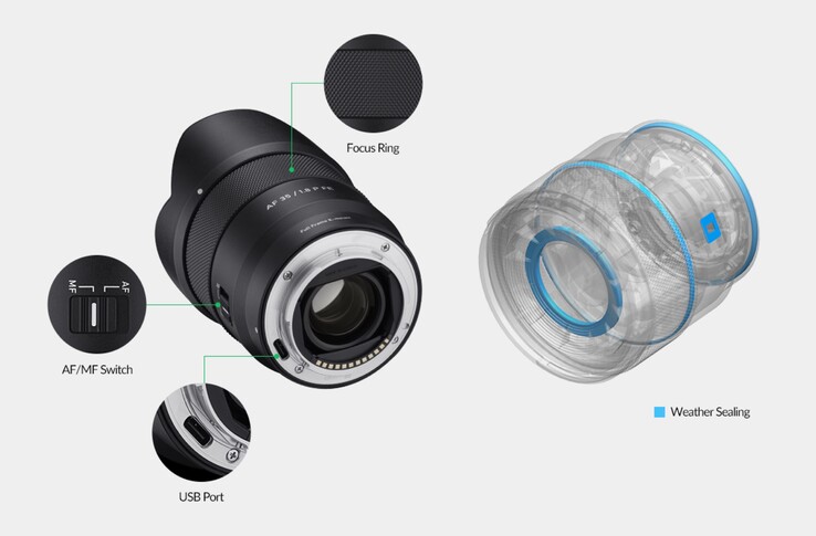 Özel bir kaydırıcı, otomatik odaklama ve manuel odaklama arasında geçiş yapmanızı sağlar. Lens, 0,27 metrelik minimum odak mesafesi ve 62 milimetre çapında bir filtre dişi sunuyor. Samyang aygıt yazılımı güncellemelerini doğrudan kamera üzerinden yükleyemediğinden, üretici montaj parçasına güncellemeleri yüklemek için kullanılabilecek bir USB-C bağlantı noktası yerleştirmiştir.