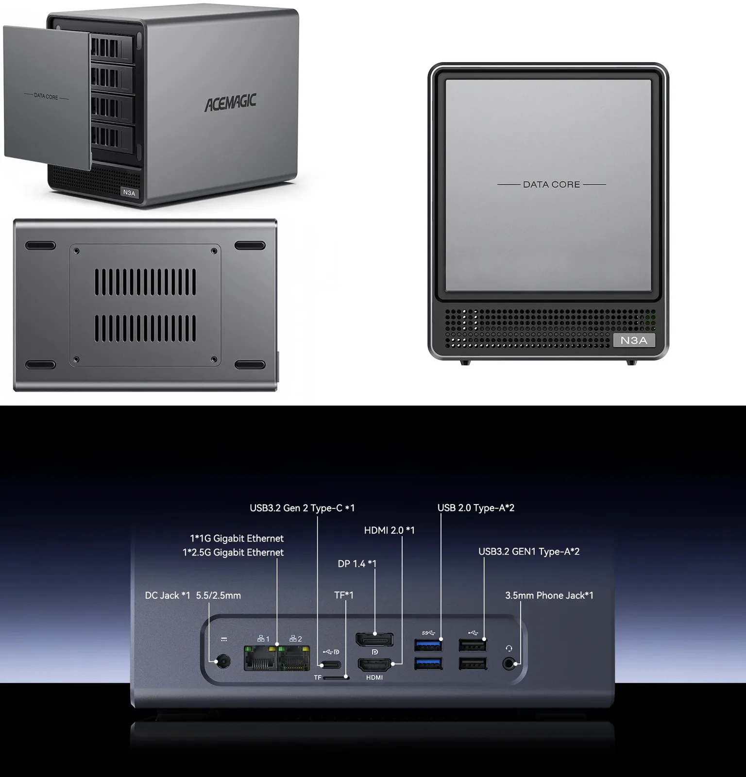 Bu arada Acemagic, N3A'yı herhangi bir RAM ya da depolama birimi olmadan satıyor. Kullanıcılar bu mini PC ve NAS hibridini 3.200 MHz hızında çalışan 64 GB'a kadar DDR4 RAM ile donatabilirler.