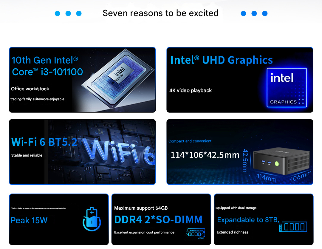 Bu özellikleri Core i3 10110Ucomet Lake serisinden uygun fiyatlı bir mobil işlemci. CPU iki çekirdek ve dört iş parçacığına sahiptir, bu da mini PC'nin ağır iş yüklerini kolaylıkla kaldıramayacağı anlamına gelir. Intel UHD 620 iGPU, en yeni entegre GPU çözümlerinin gerisinde kalıyor, ancak yine de normal medyayı iyi bir şekilde idare edebiliyor.