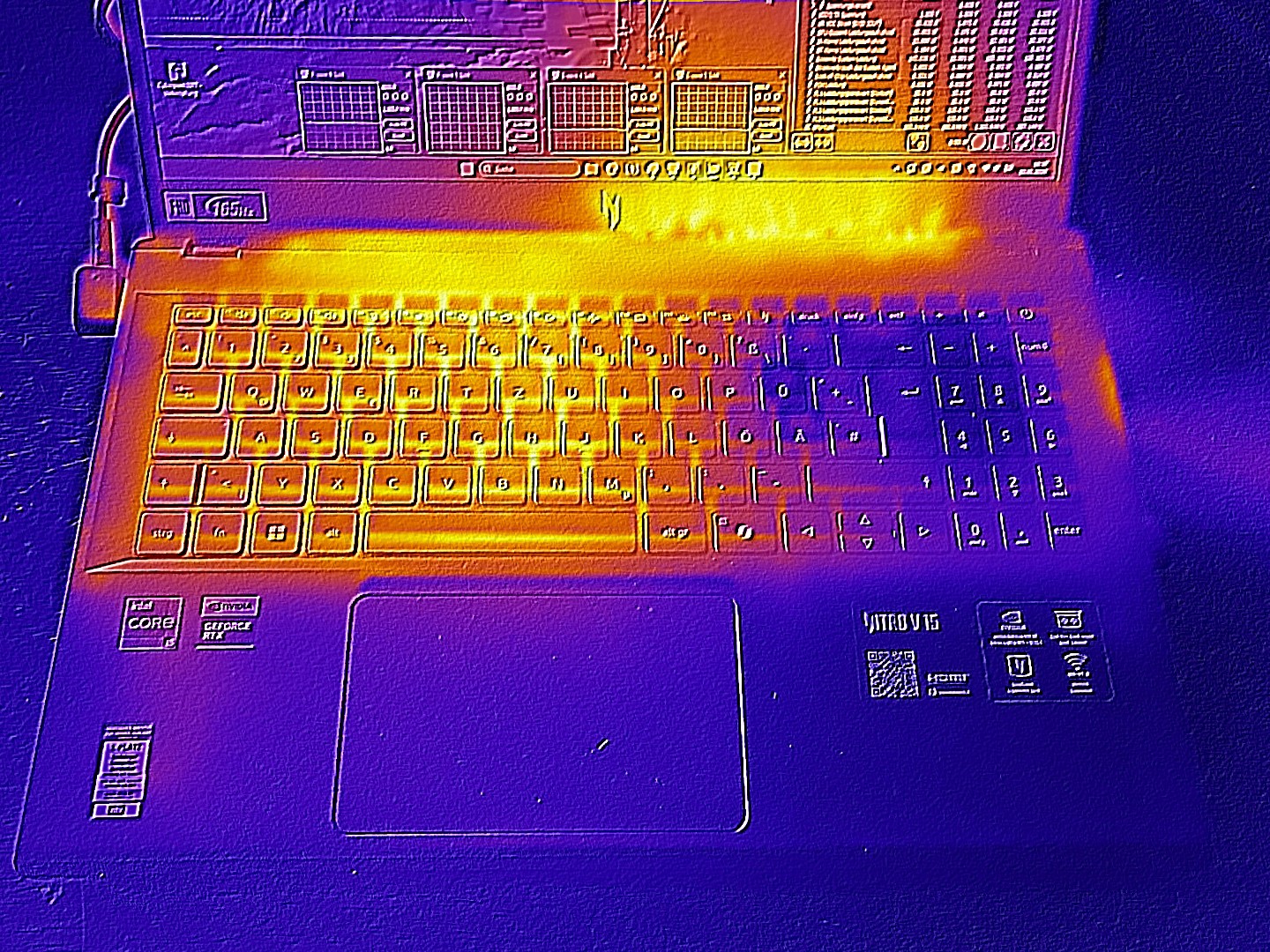 Sıcaklıklar bir RTX 5050 dizüstü bilgisayar için beklentilerle uyumlu. Boşta çalışırken kasa oldukça serin kalıyor.