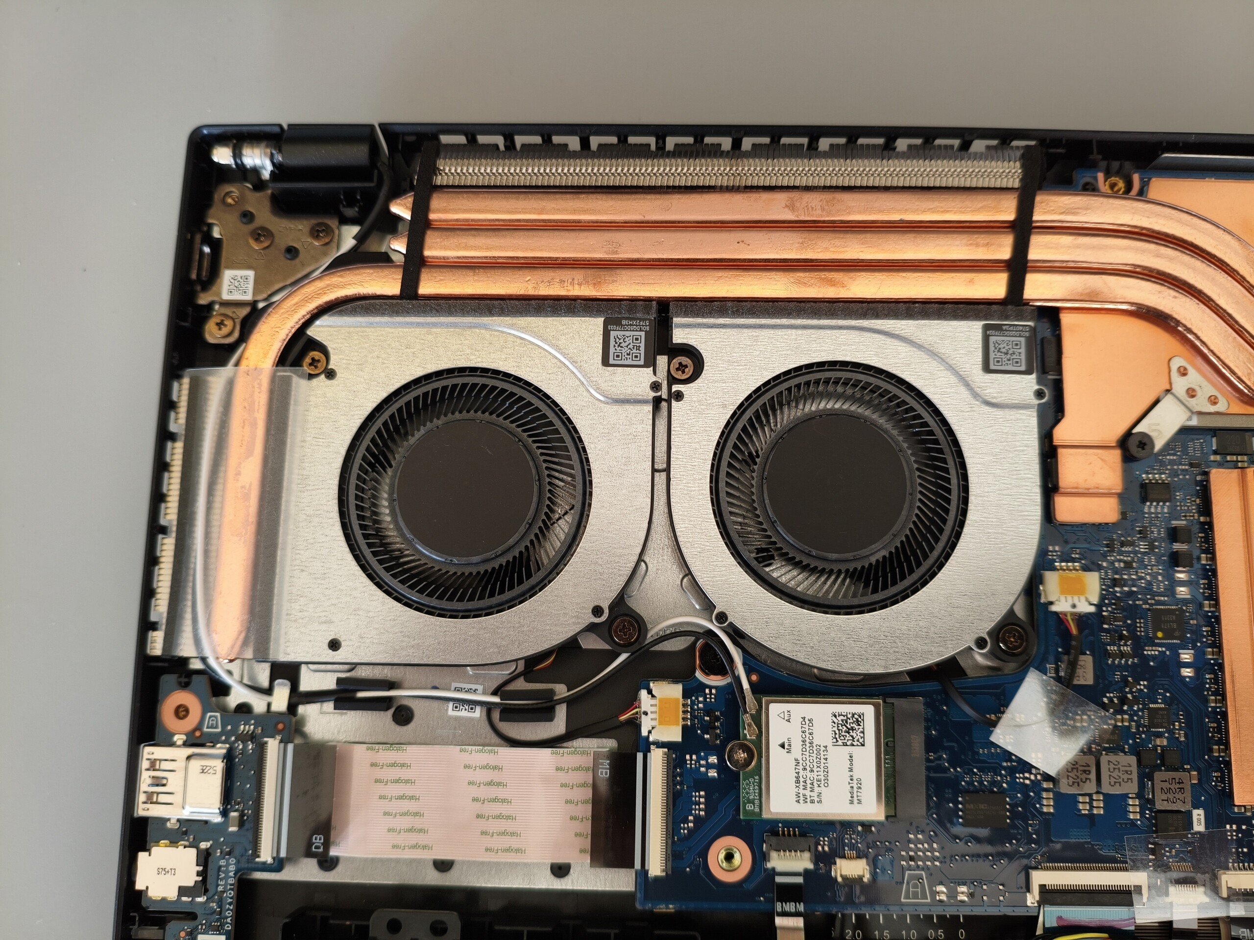 Kart okuyucunun olmaması bir yana, port seçimi eleştiriye çok az yer bırakıyor. Gigabit LAN portu, HDMI çıkışı ve 3,5 mm ses jakı, üç USB-A portu ve bir Thunderbolt 4 konnektörü ile tamamlanıyor. Ayrıca bir Kensington kilit yuvası da mevcut. Wi-Fi 6E modülü orta halli bir performans sunuyor ve oldukça yumuşak web kamerası da benzer şekilde etkileyici olmayan sonuçlar üretiyor. İç kısımlara erişmek için 11 adet Phillips vidanın sökülmesi gerekiyor. İç kısmın görüntülerini aşağıda bulabilirsiniz.