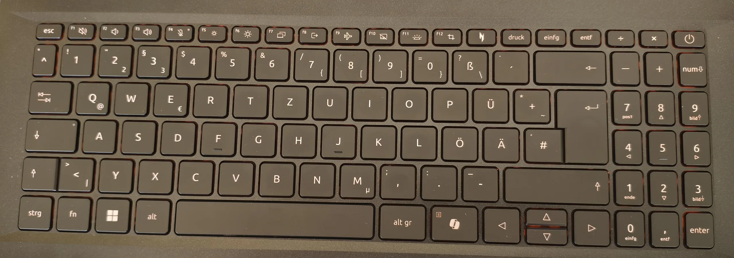 Klavye düzeninden tam olarak memnun kalmadık. Eleştiri noktalarımız arasında tam dört sütunlu düzen yerine üç sütunlu sayısal tuş takımı ve oldukça küçük merkezi ok tuşları yer alıyor. Yazma deneyimi tipik bir lastik kubbe gibi ve bu nedenle özellikle dikkat çekici değil. Arka aydınlatma söz konusu olduğunda da iyileştirme için yer var. Turuncu aydınlatma, en yüksek ayarında bile özellikle parlak değil. İşin iyi tarafı, 15 inçlik dizüstü bilgisayar 12,6 x 7,8 cm ölçülerinde oldukça büyük bir dokunmatik yüzeye sahip, ancak tıklandığında biraz sarsıntılı bir his veriyor.