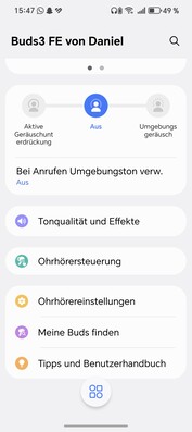 Uyarlanabilir ANC, trafik gürültüsü gibi düşük frekansları 30 dB'ye kadar etkili bir şekilde azaltırken, orta frekanslar (sesler) tamamen sessizlik yaratmadan önemli ölçüde azaltılır. Mod dinamik olarak ortama uyum sağlar ve Ortam Sesi, sessiz alanlarda ortam seslerinin minimum tıslama ile doğal olarak geçmesine izin verir. Buds3 FE uçakta da iyi bir performans gösterdi.