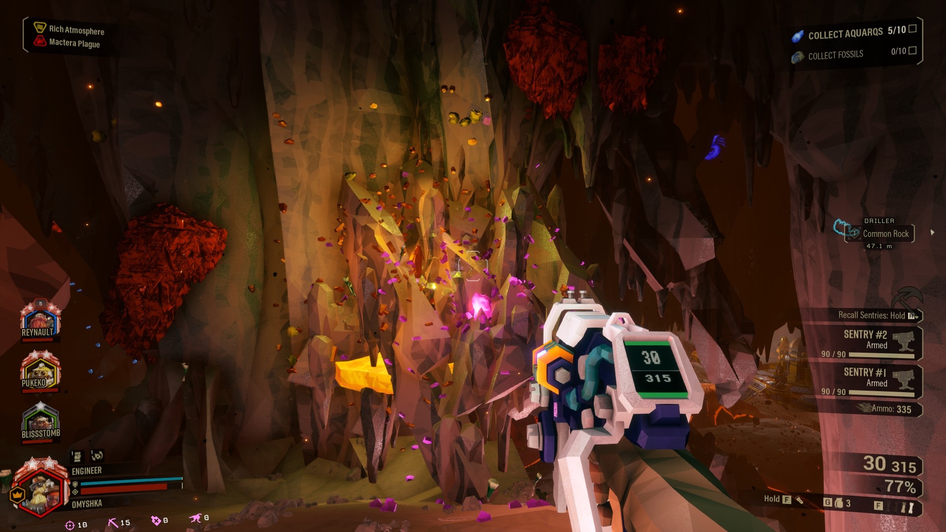 Oyunda her biri açıkça tanımlanmış bir role ve birbirini tamamlayan benzersiz araçlara sahip dört farklı sınıf (Scout, Gunner, Engineer ve Driller) bulunuyor. Tamamen yıkılabilir ortam, oyuncuların tünel kazmasına, kestirme yollar oluşturmasına veya savaş sırasında dar alanları taktiksel olarak kontrol etmesine olanak tanır. Görevler kaynak toplamak, hedefleri tamamlamak ve uzaylı yaratık dalgalarını savuşturmak etrafında dönüyor. Oyuncular ilerledikçe, teçhizatlarını daha da özelleştirmek için yeni silahların, yükseltmelerin ve kozmetik ödüllerin kilidini açarlar.