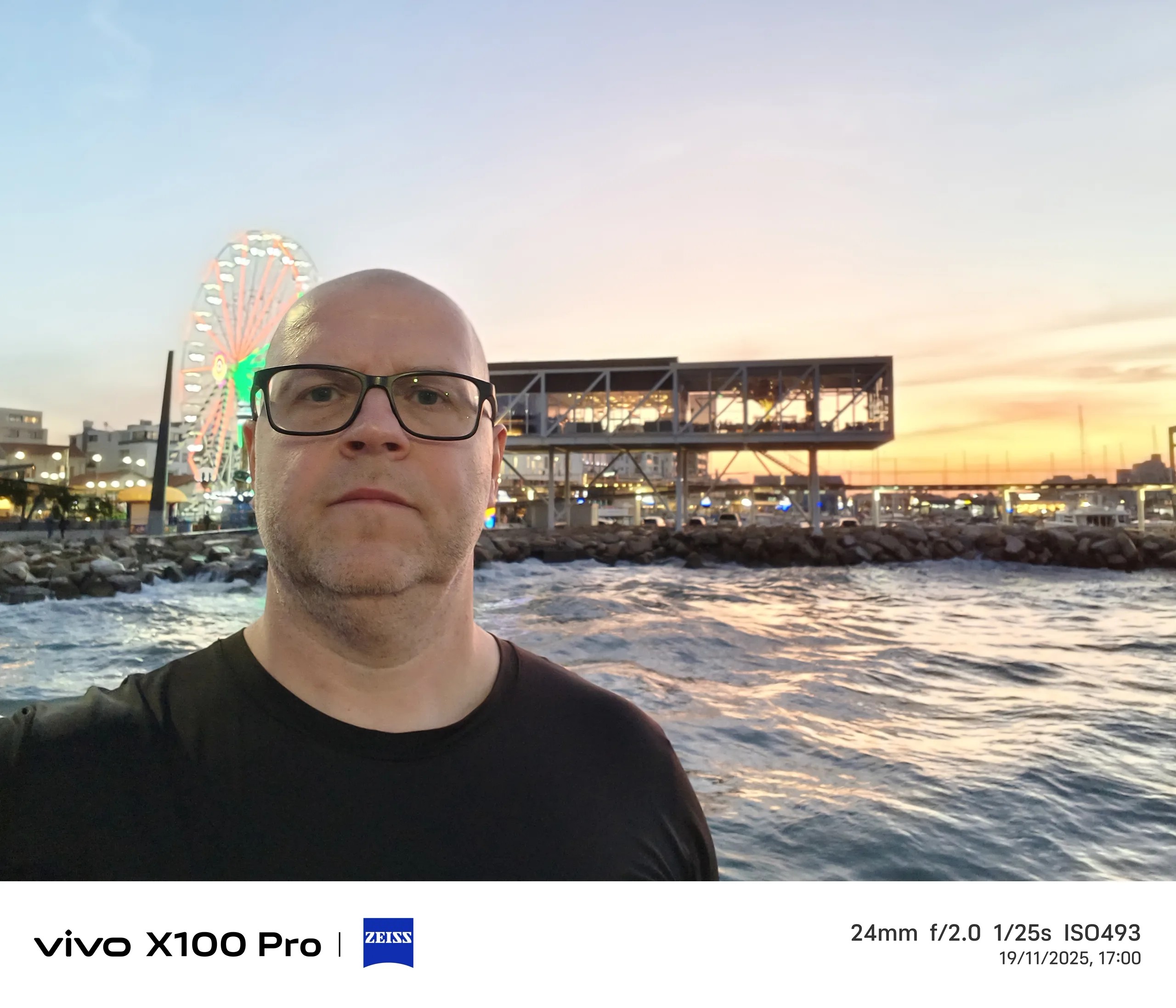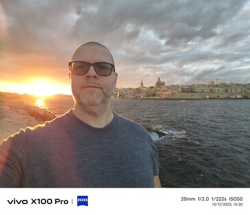Tam olarak büyük bir selfie hayranı değilim, ancak bilim adına çeşitli yerlerde ve farklı aydınlatma koşullarında birkaç selfie çektim. Bana göre, Vivo X300 Pro, Vivo X200 Ultra'ya kıyasla selfie kalitesi açısından önemli ölçüde iyileşti. Çoğu durumda, en yeni Vivo amiral gemisi, yalnızca belirgin şekilde daha geniş görüş alanı sayesinde değil, aynı zamanda cilt tonları açısından da dörtlü arasında en doğal görünen görüntüyü sunuyor - en azından benim durumumda. Ancak gün batımının arka ışık kaynağı olarak kullanıldığı son örnekte Vivo X300 Pro da biraz zorlanıyor.