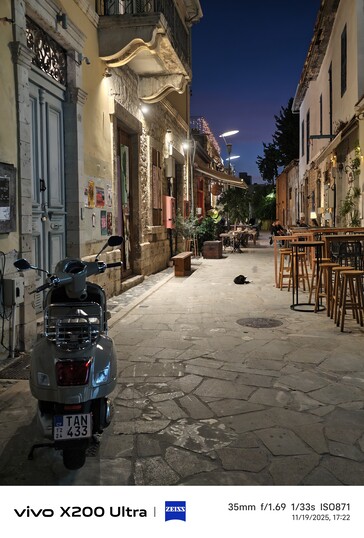İlk bakışta, Galaxy S23 Ultra'daki aşırı pozlanmış lambalar göze çarparken, üç Vivo modeli vurguları çok daha iyi kontrol altında tutuyor. Vivo X200 Ultra, uzaktaki nesnelerde en fazla ayrıntıyı gösteriyor ki 35 mm odak uzaklığı göz önüne alındığında bu pek de şaşırtıcı değil. Geriye dönüp bakıldığında, bu sonuç Vivo'nun IMX989'dan uzaklaşmasını destekliyor: daha küçük sensörlere rağmen, Vivo X100 Pro yakın mesafeden bile tam olarak yetişemiyor. Örneğin, motosikletin solunda, Vivo X300 Pro hem X100 Pro hem de X200 Ultra'dan daha fazla ayrıntı gösteriyor.