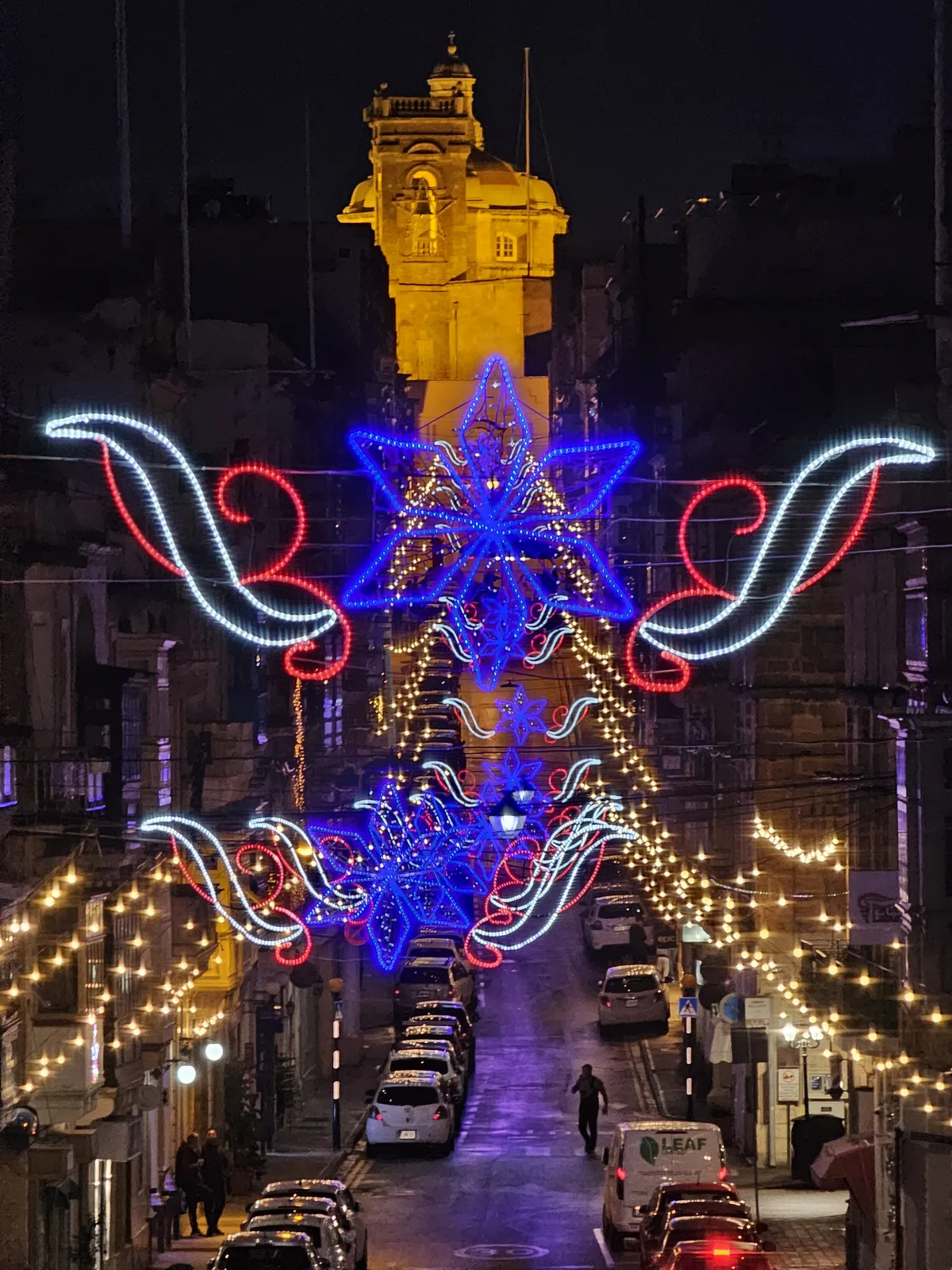 Noel öncesi Malta özel bir deneyimdir. Şehrin birçok yerinde kar yerine, bazen çok ayrıntılı Noel ışıklandırmasına sahip sokaklar bulunur ve bu da iyi bir elde gece modu testi sağlar - örneğin Senglea'daki Triq Il-Vitorja'da veya akşamları tıklım tıklım olan Valletta'daki ana arter boyunca. Bunlar 10x zoom testi için oldukça zorlu koşullar. Bir tripod ile elbette çok daha iyi sonuçlar elde etmek mümkün olabilirdi.