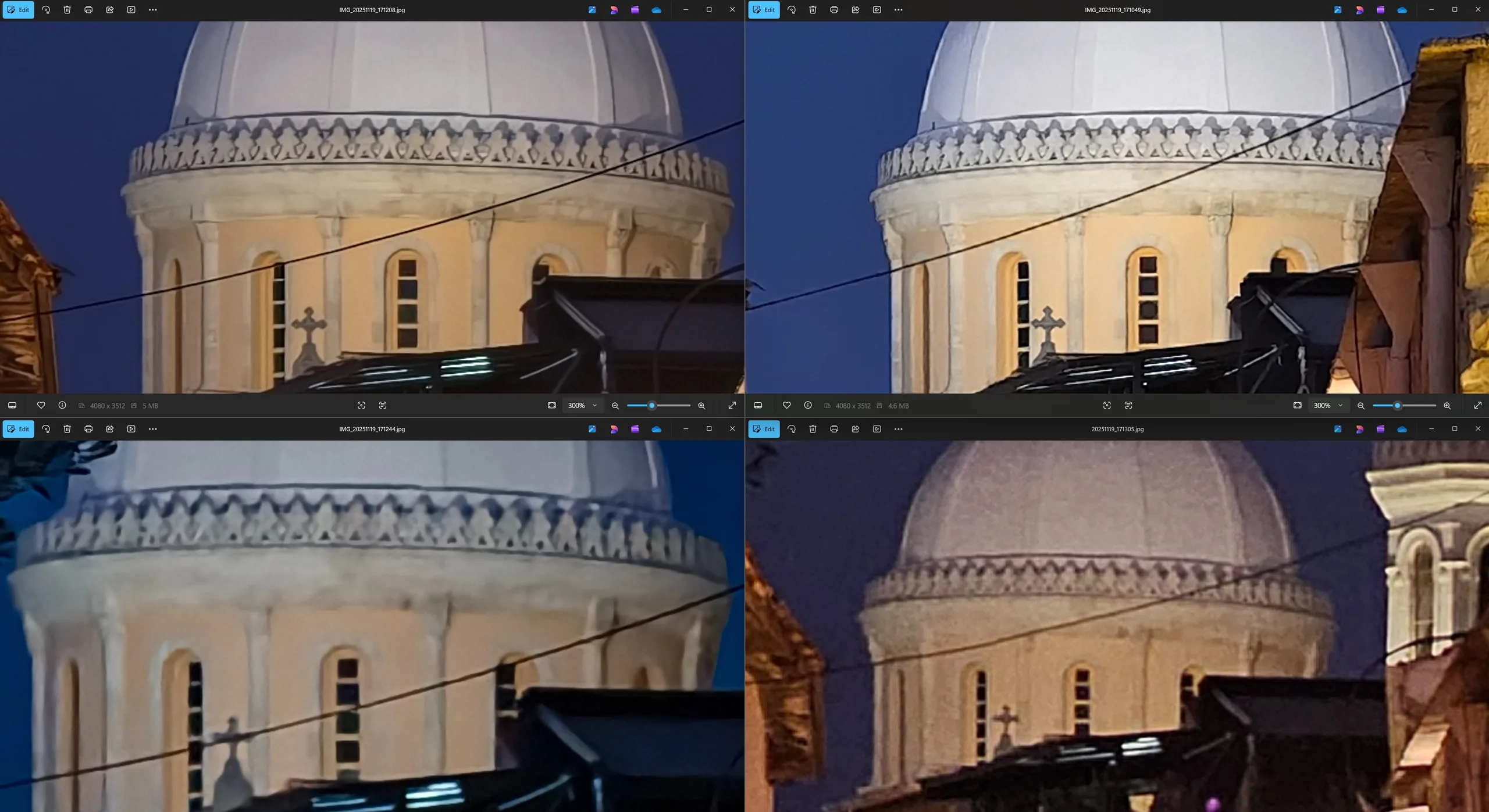 Larnaka'daki Aziz Lazarus Kilisesi, Vivo modelleri arasındaki ilk ultra geniş açı karşılaştırması için bir referans konusu olarak hizmet etti. Her durumda biraz farklı çekim açıları için özür dilerim, ancak kazanan ne olursa olsun oldukça açık olmalı. Vivo X200 Ultra sadece en geniş görüş alanını sunmakla ve kiliseyi bütünüyle yakalayabilen tek model olmakla kalmıyor, aynı zamanda daha uzaktaki ayrıntıları da en keskin şekilde yansıtıyor. Gün ışığında bile, Vivo X300 Pro hala Vivo X100 Pro'dan belirgin şekilde daha iyi olmasına rağmen, bu nedenle 300× büyütmede açık ara galiptir.