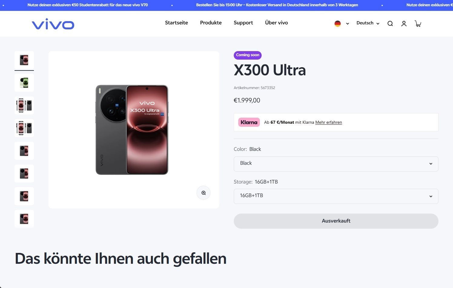 Ayrıca, özellikle Avusturya ve Almanya için resmi olarak planlanan Euro fiyatı gibi görünen daha ayrıntılı bilgiler de mevcuttur. Avusturya, Almanya ve Macaristan için resmi Vivo mağazası, Vivo'nun piyasaya sürülmesinden bu yana Vivo X300 Pro'nin, en azından çevrimiçi dolaşan ekran görüntülerine dayanarak, Vivo X300 Ultra'yı zaten listelediği görülüyor. Kontrol edildiğinde, bu listeler artık mevcut değildi, bu nedenle ekran görüntüleri oldukça gerçekçi görünmesine rağmen sızıntı doğrudan doğrulanamıyor.