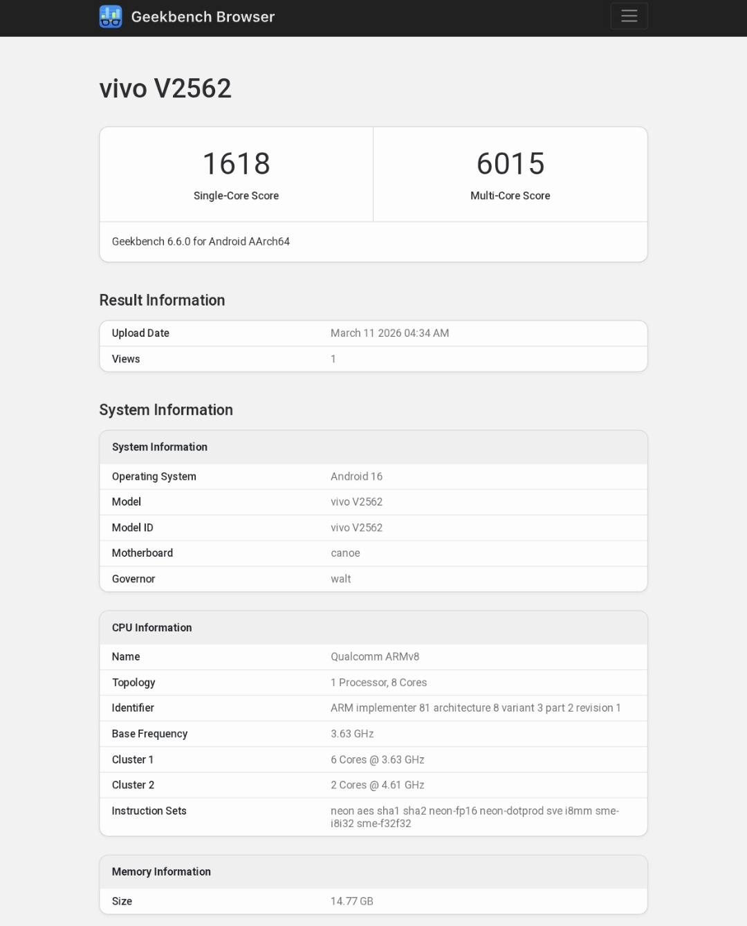 Dahası, X300 Ultra piyasaya sürülmeden önce Geekbench tarafından durduruldu. V2562 model numarasıyla anılan cihaz, 16 GB RAM'i ve aynı Snapdragon 8 Elite Gen 5 gibi amiral gemilerinin altında yatan yonga seti RedMagic 11 Pro ve OnePlus 15 (Amazon'da şu anda 899 dolar). Yine de bu erken aşamada bu puanlardan herhangi bir performans sonucu çıkarmanızı tavsiye etmeyiz.