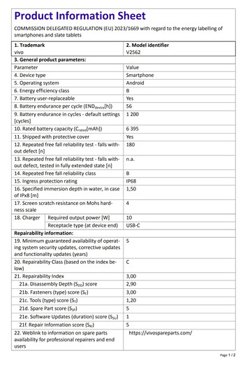 Bunun yerine, Vivo'nun yeni küresel amiral gemisi, bir önceki modelden sadece %3 daha uzun ömürlü Galaxy S26 Ultra 56:53 saate karşılık 55 saat. Yine de Vivo X300 Ultra, Samsung muadiliyle eşleşerek 1.200 döngüden sonra pil sağlığının %80'ini koruyacak şekilde derecelendirilmiştir. Bu arada EPREL, Vivo X300 Ultra'nın küresel olarak da en az beş yıllık Android güvenlik güncellemelerini alacağını doğruluyor.