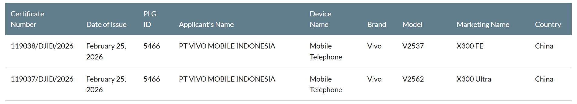Şimdi cihaz Endonezya'nın SDPPI'sı tarafından onaylandı. Listeleme, "V2562" model numarasının Vivo X300 Ultra'nın global varyantına ait olduğunu doğruluyor.