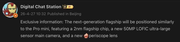 Bu kompakt modeli de 2nm sürecine dayalı bir amiral gemisi yonga setine sahip olabilir, potansiyel olarak bir yeni̇ nesi̇l Dimensity yonga seti. Kamera bölümünde LOFIC teknolojisine sahip 50MP sensör yer alabilir. Ayrıca yeni bir periskop telefoto lens ile gelebilir.