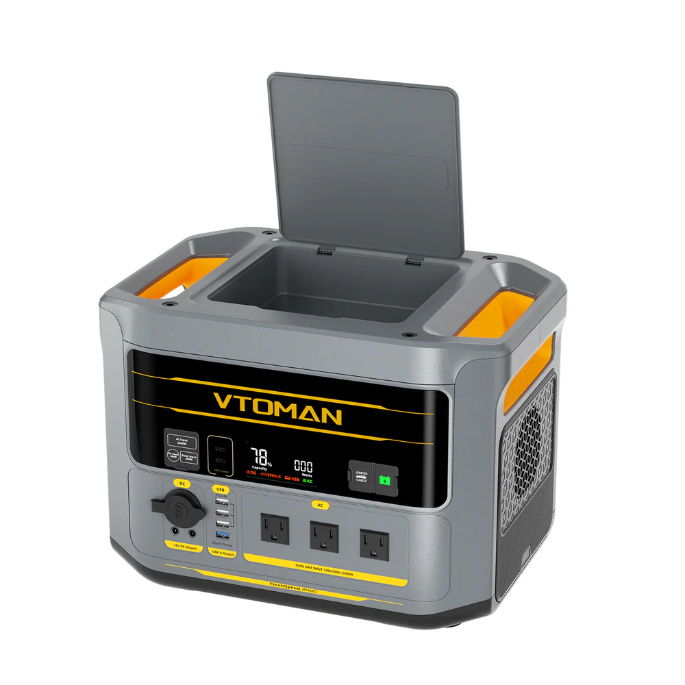 Güç istasyonunun LFP bataryası 3.000 çevrim değerine (%80 kapasiteye kadar) ve on yıllık kullanım ömrüne sahiptir. Vtoman'ın son aygıt, üç AC soketi (2400 W), üç USB-A (bağlantı noktası başına 12 W Maks), bir USB-A (18 W), iki USB-C (bağlantı noktası başına 100 W Maks) ve üç DC çıkışı (1 x araç şarj cihazı + 2 x DC5521) dahil olmak üzere çok sayıda çıkış sunar. Bu, kullanıcıların aynı anda 12 cihaza kadar güç sağlayabileceği anlamına gelir.