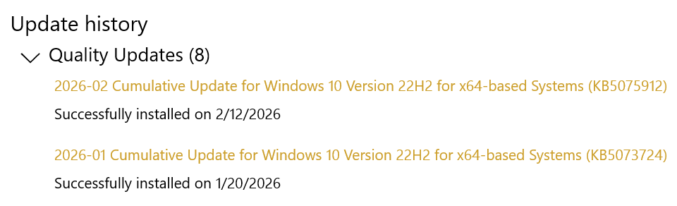 Microsoft'un Windows 10 Genişletilmiş Güvenlik Güncelleştirmeleri (ESU) için 10 Şubat 2026 tarihli güvenlik güncelleştirmesi KB5075912windows 10 sürüm 22H2'yi OS Build 19045.6937'ye (ve 21H2'yi 19044.6937'ye) yükseltir.