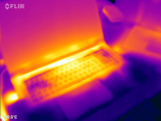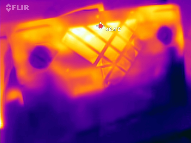 Yüksek sesli soğutma sistemi sıcaklıkları genel olarak düşük tutar. Yük altında, alt tarafta merkezi olarak yaklaşık 45°C'lik sıcak noktalar ölçülürken, diğer alanlar önemli ölçüde daha soğuk kalır.