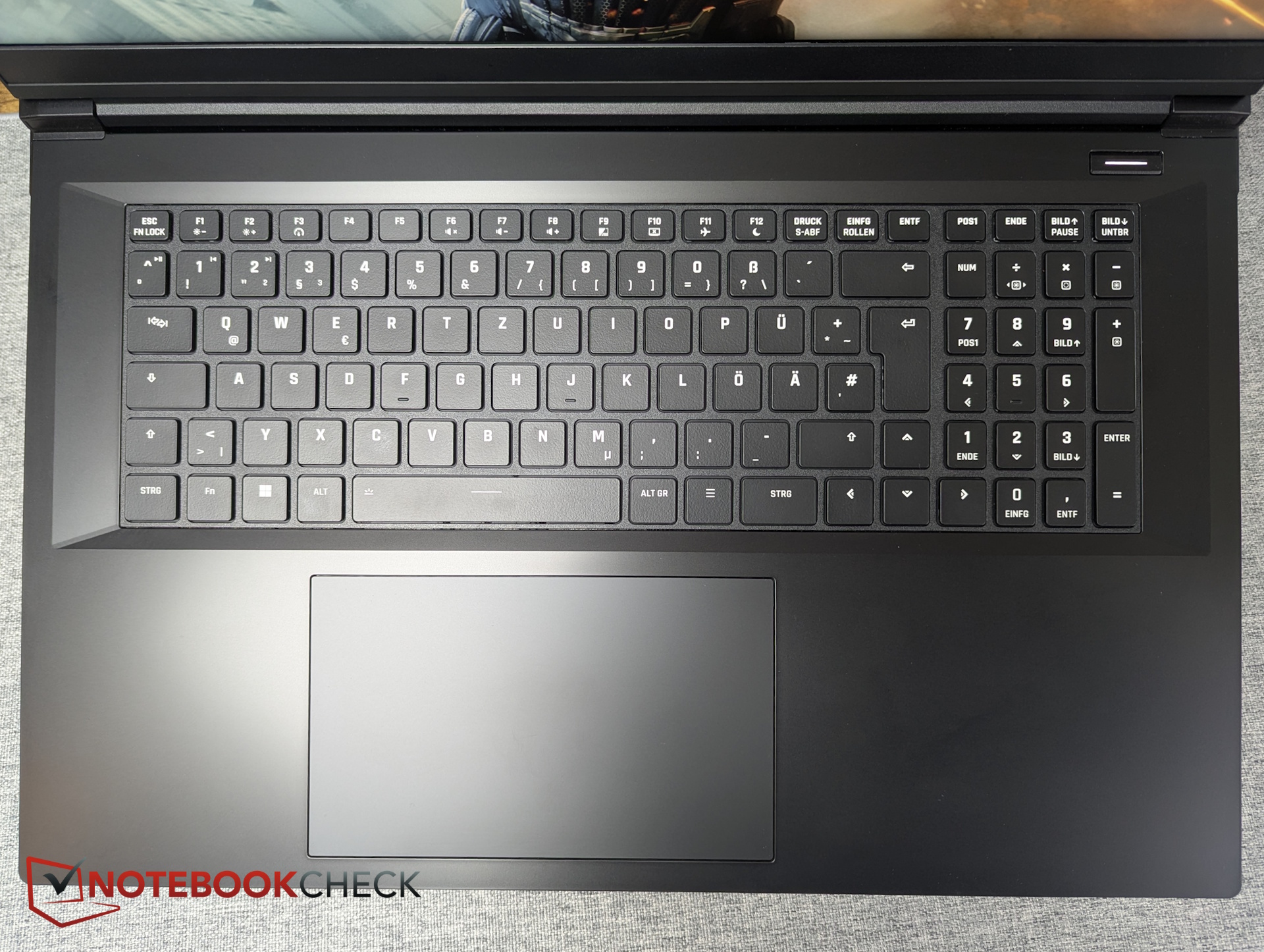 Çoğu XMG dizüstü bilgisayarın aksine, ok tuşları Focus 17'de olduğu gibi ana tuş kümesinden ayrılmamıştır. Aksi takdirde, düzen temiz ve sağda özel bir numpad içeriyor.