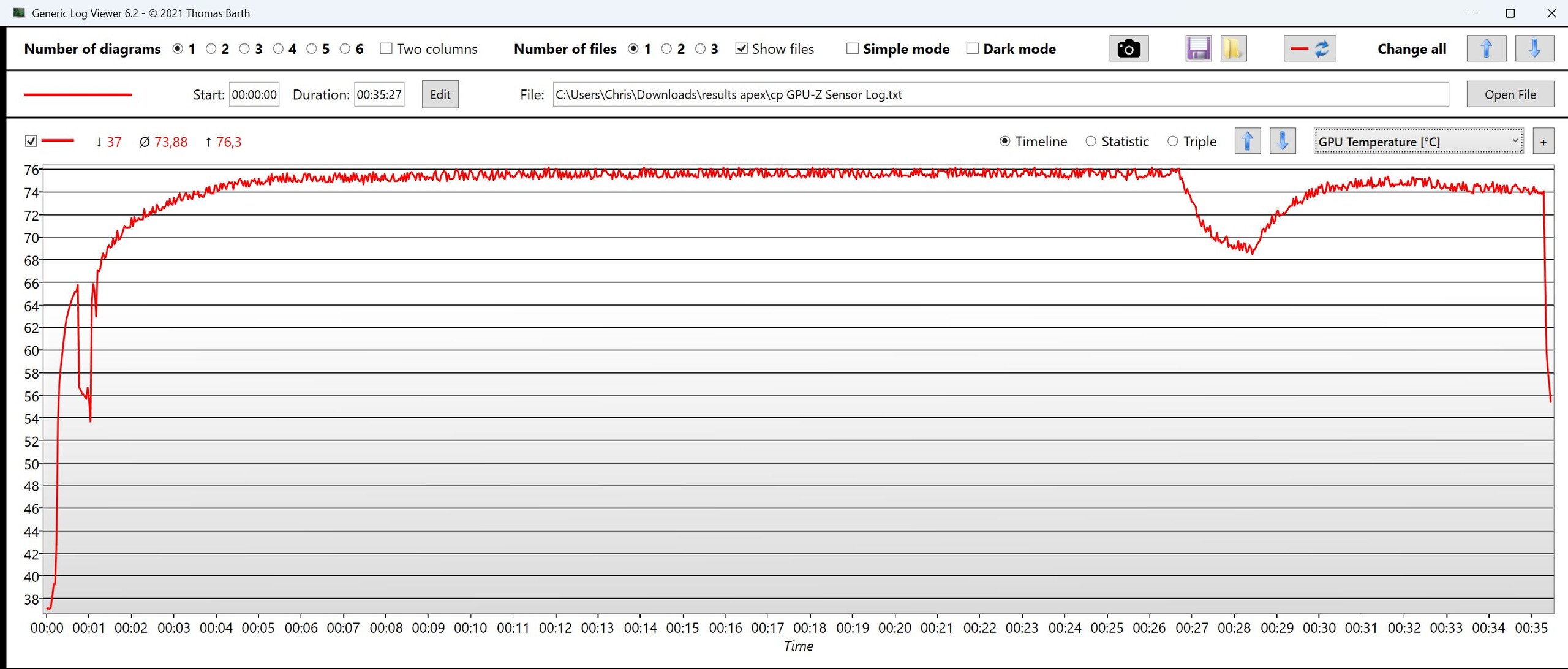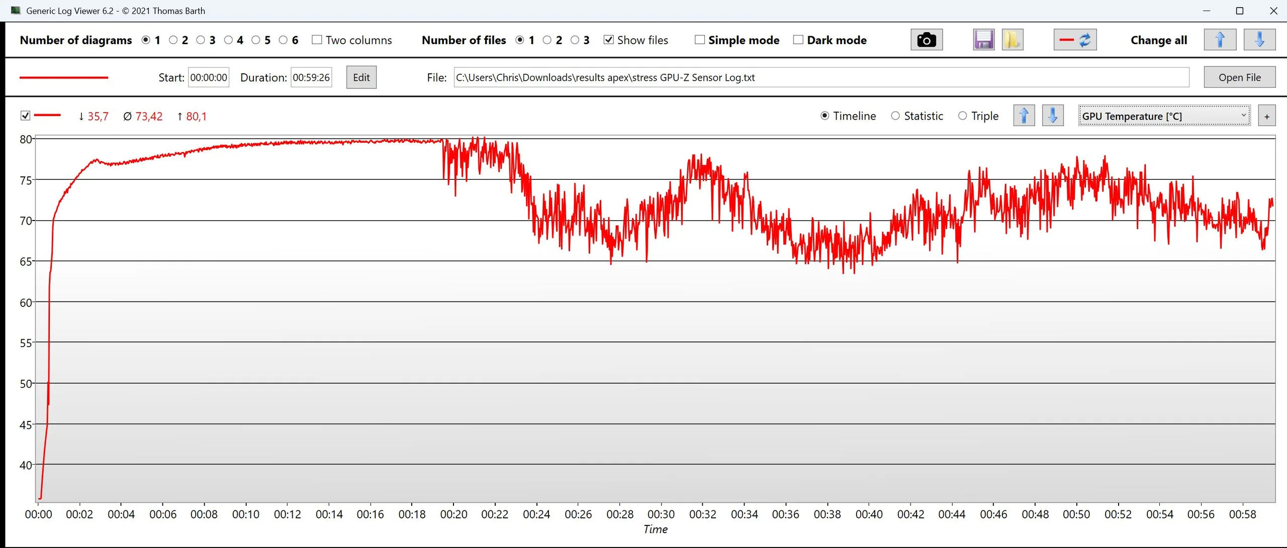 | CPU Saati (GHz) | GPU Saati (MHz) | Ortalama CPU Sıcaklığı (°C) | Ortalama GPU Sıcaklığı (°C) | |