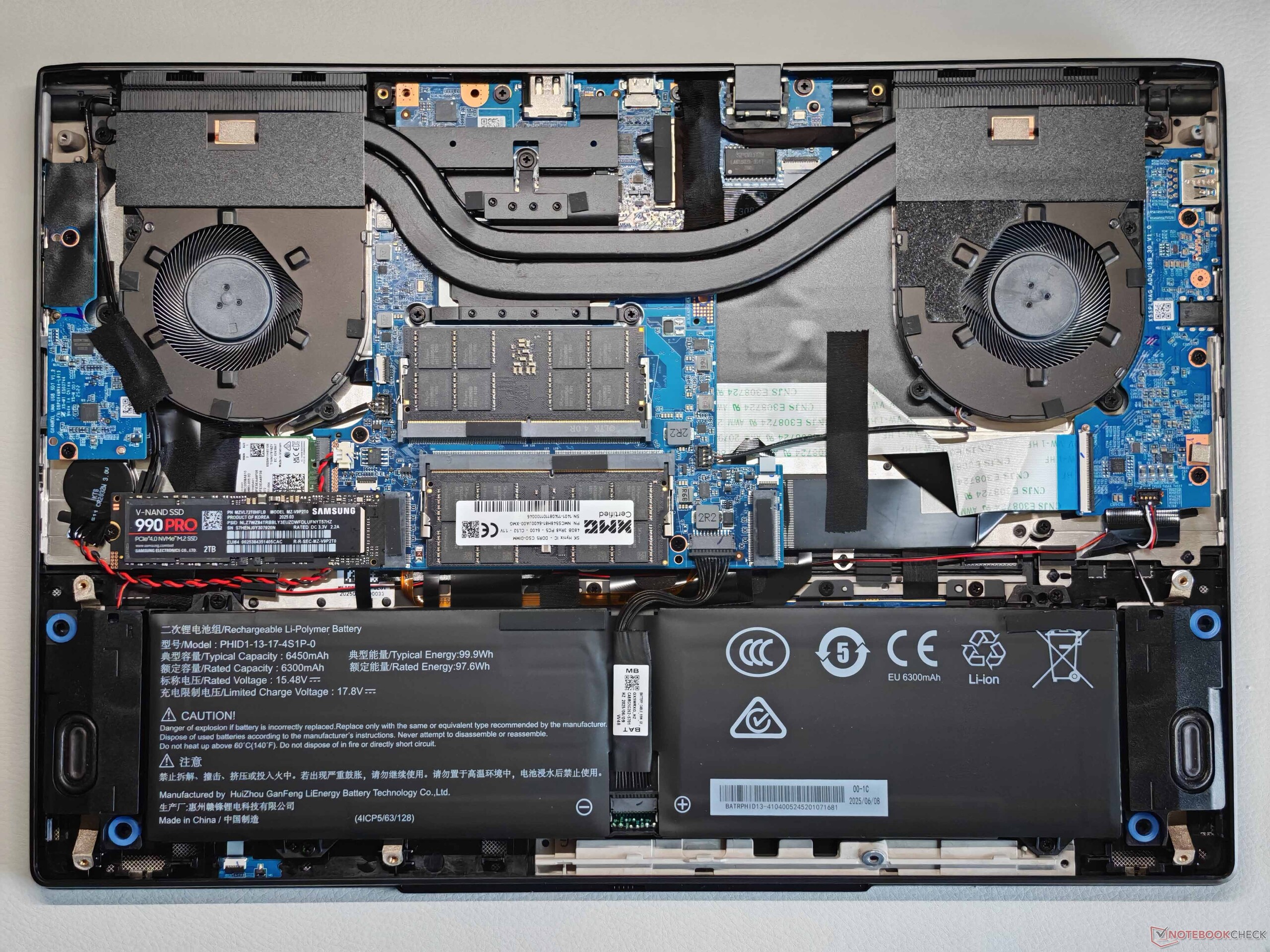 İki SO-DIMM yuvası, iki SSD ve değiştirilebilir bir WLAN modülü desteği ile bakım seçenekleri çok iyi; bir Wi-Fi 7 modülü de mevcut. Testlerimiz sırasında aktarım hızlarında herhangi bir sorunla karşılaşmadık. Evo 15, Thunderbolt 4, HDMI ve tam boyutlu bir kart okuyucu dahil olmak üzere çok çeşitli bağlantı noktaları sunar. 1080p web kamerası (gizlilik deklanşörü ve IR modülü dahil) kullanım amacı için yeterli.