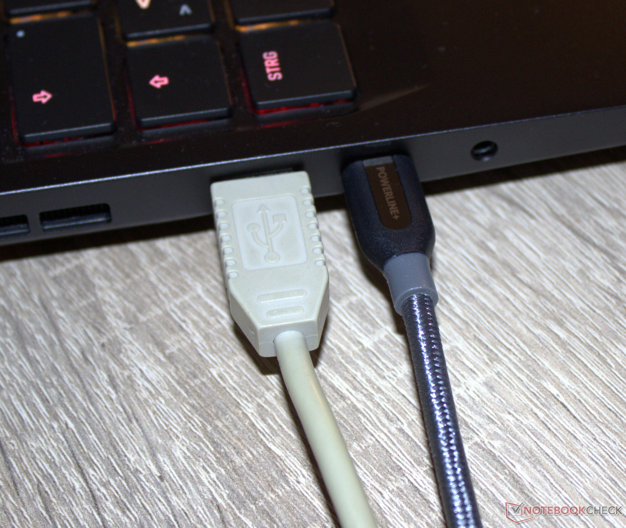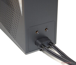 USB portları arasındaki mesafe (sağ taraf: 12 mm, sol taraf: 8 mm) uygun bir şekilde orantılı görünüyor: İki tipik büyüklükteki bellek (konektör) aynı anda takılabiliyor (galeri resimlerine bakın). Video çıkışları ve güç konektörleri cihazın arkasında bulunabilir. İlgili kablolar arkaya doğru uzanır ve bu nedenle araya girmez.