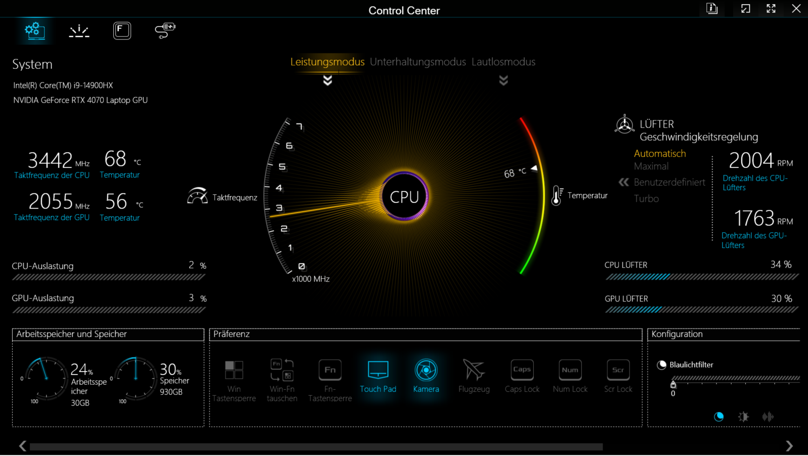 Optimum koşullar altında (yakın çevrede WiFi cihazı yok, dizüstü bilgisayar ile sunucu bilgisayar arasında kısa mesafe), Intel'in WiFi-6E çipi (AX211) iyi ila çok iyi veri hızları üretir. FHD web kamerası (2.1 MP, kapaksız) şaşırtıcı çekimler yapmıyor. MicroSD kart okuyucu (referans kart: AV PRO microSD 128 GB V60) ortalama hızdadır.