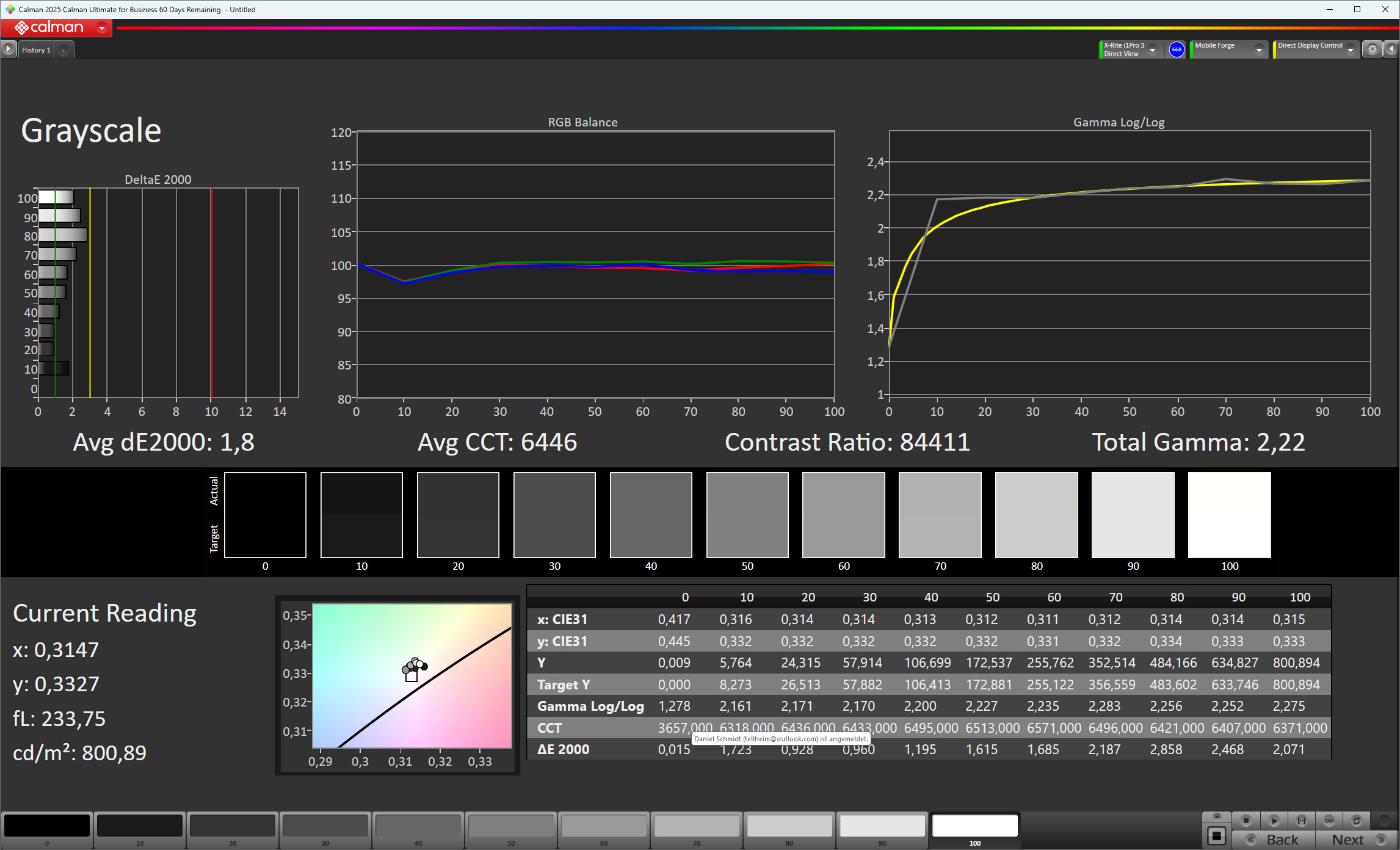 Sadece HDR içerikle 6.000 cd/m²'nin biraz üzerinde en yüksek parlaklık elde edilir, ancak daha küçük beyaz alanlar söz konusu olduğunda bile (APL18: 3.233 cd/m²) Magic8 Pro yüksek parlaklık seviyelerini korur.