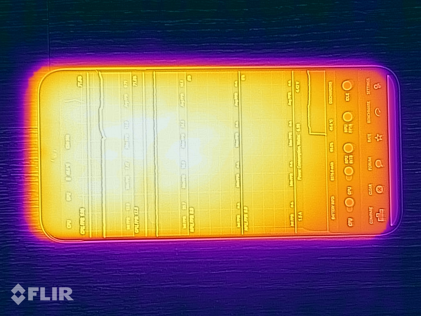 (±) Üst taraftaki maksimum sıcaklık, 35.2 °C / 95 F ortalamasına kıyasla 42.8 °C / 109 F'dir. , Smartphone sınıfı için 21.9 ile 247 °C arasında değişir.