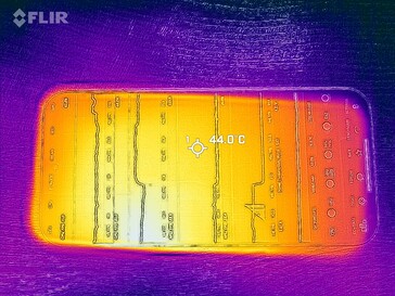 (-) Üst taraftaki maksimum sıcaklık, 35.2 °C / 95 F ortalamasına kıyasla 50.6 °C / 123 F'dir. , Smartphone sınıfı için 21.9 ile 247 °C arasında değişir.