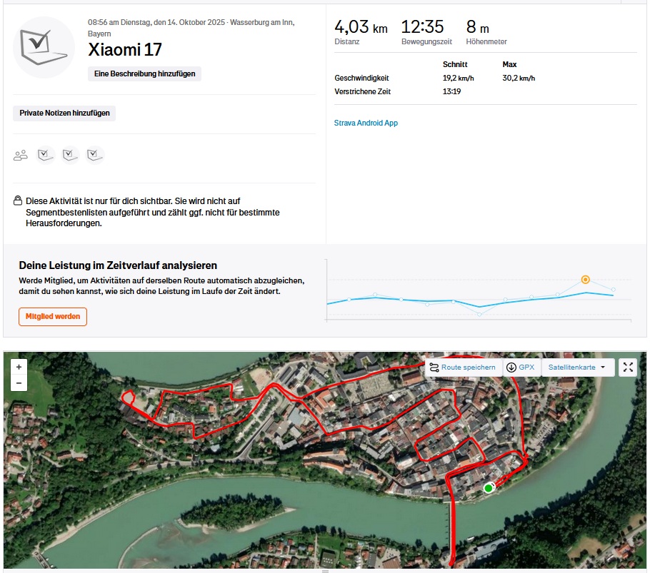 Rota, Xiaomi 17 tarafından doğru bir şekilde yeniden üretildi ve Garmin Venu 2 karşılaştırma cihazımız da çok benzer bir rota sağladı.