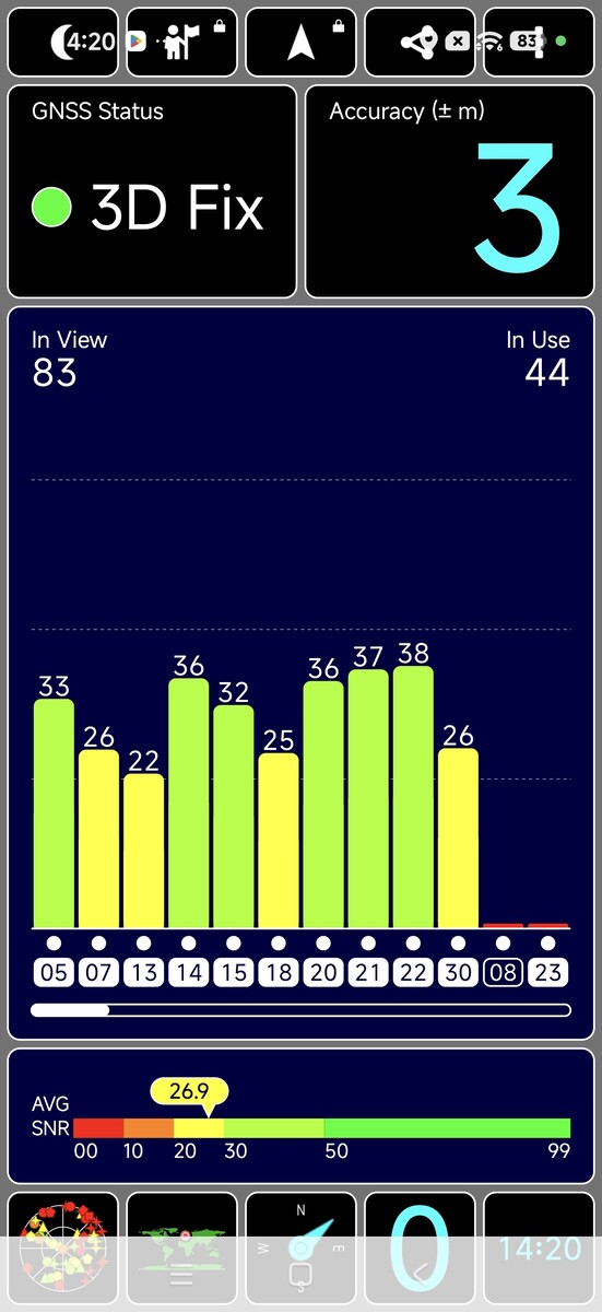 Kompakt üst düzey telefonun konum takibi, çift bant modunda tüm yaygın büyük uydu sistemlerini kullanıyor.
