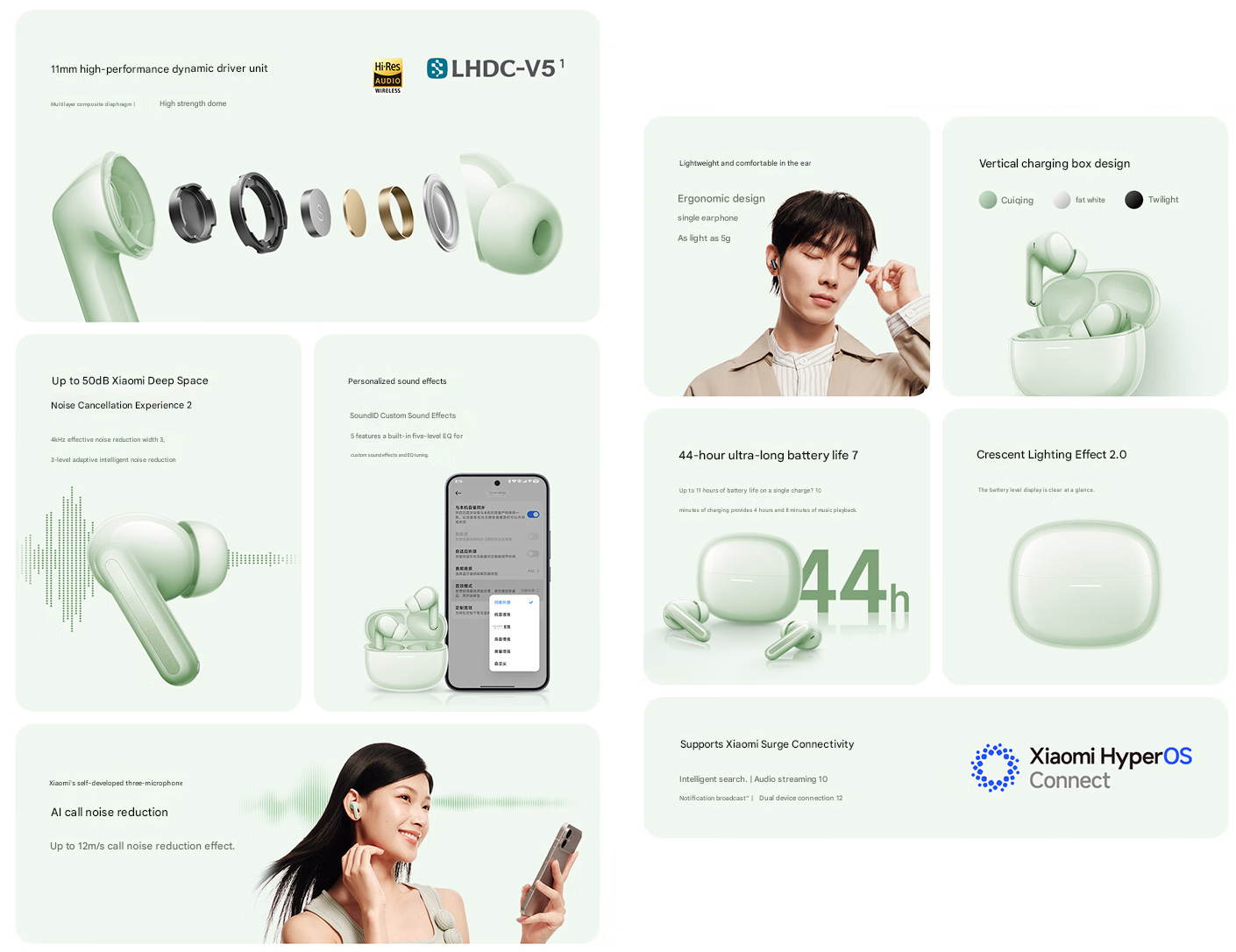 Ses kişiselleştirme özelliği sayesinde kullanıcılar bir özel SoundID dinleme tercihleriyle eşleşiyor. Xiaomi ayrıca, yapay zeka gürültü azaltma algoritmasıyla eşleştirilen üç mikrofonlu kurulumla net bir arama deneyimi vaat ediyor.