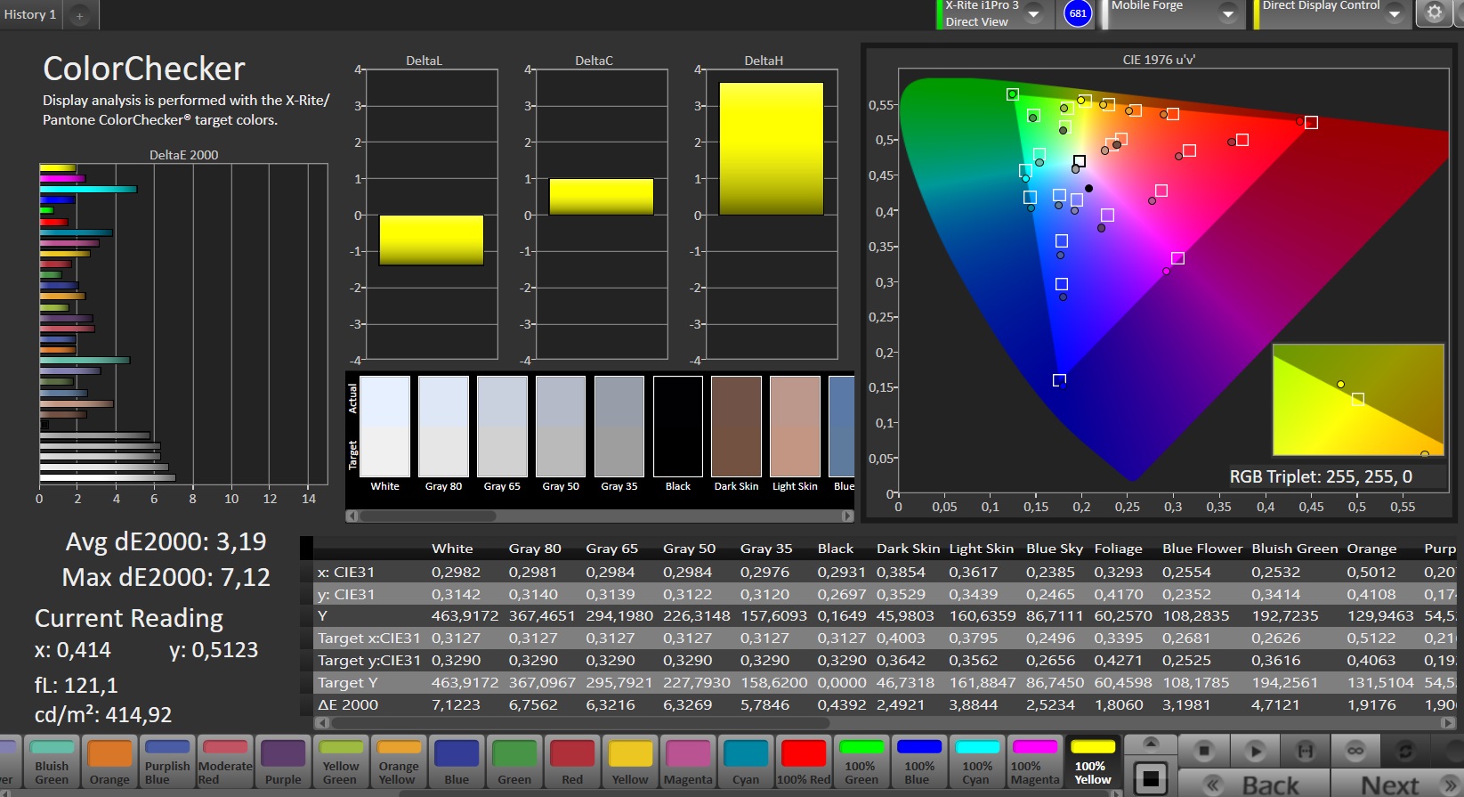 | Colorchecker dE 2000 max. * | 7.12 | 9.81 -38% | 2.8 61% | 6.7 6% |