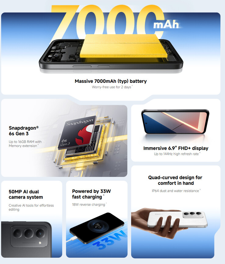 Ayrıca, yeni bir Poco M8 serisi telefonun varlığını sessizce doğruladı. Bağlam için Poco M8 ve Poco M8 Pro ocak ayında eş zamanlı olarak piyasaya sürüldü. Şimdi bunlara, 6,9 inçlik ekranı sayesinde 169,5 x 80,4 x 8,4 mm boyutlarındaki daha büyük Poco M8s de katıldı.