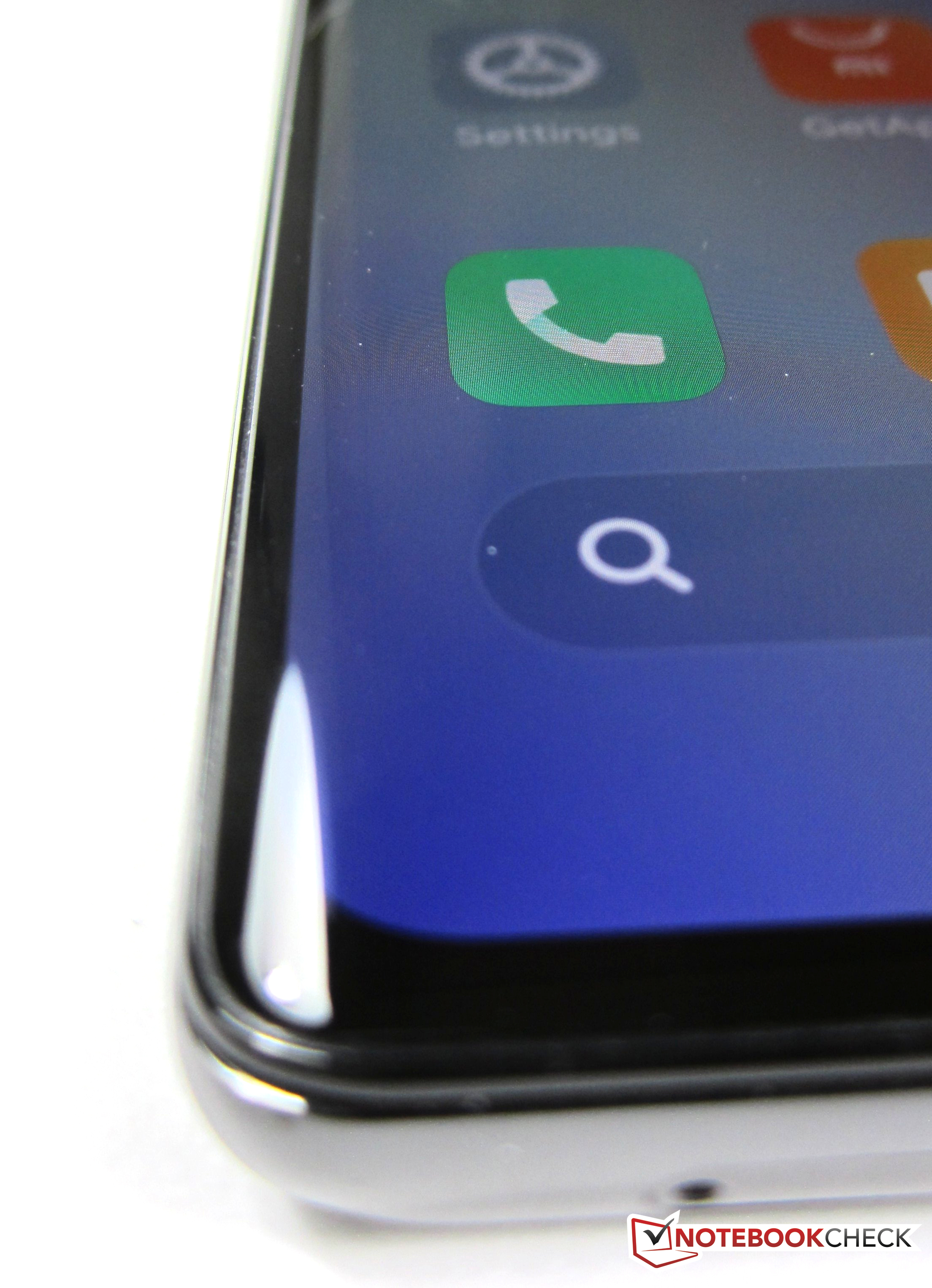 AMOLED ekran Gorilla Glass Victus tarafından korunuyor ve göze çarpmayan yuvarlak uzun kenarları yekpare seramik çerçeveyle birleşiyor. Yanlarda ve üstte, çerçeveler yalnızca birkaç milimetre genişliğindedir, ancak yine de 120 Hz ekranda istenmeyen girişleri önlemek için yeterlidir. Sadece alt çerçeve biraz daha geniş görünüyor, ancak hala neredeyse çerçevesiz bir tasarım izlenimi veriyor. Ekran, yazı tipi alanının yaklaşık %88'ini kaplar.