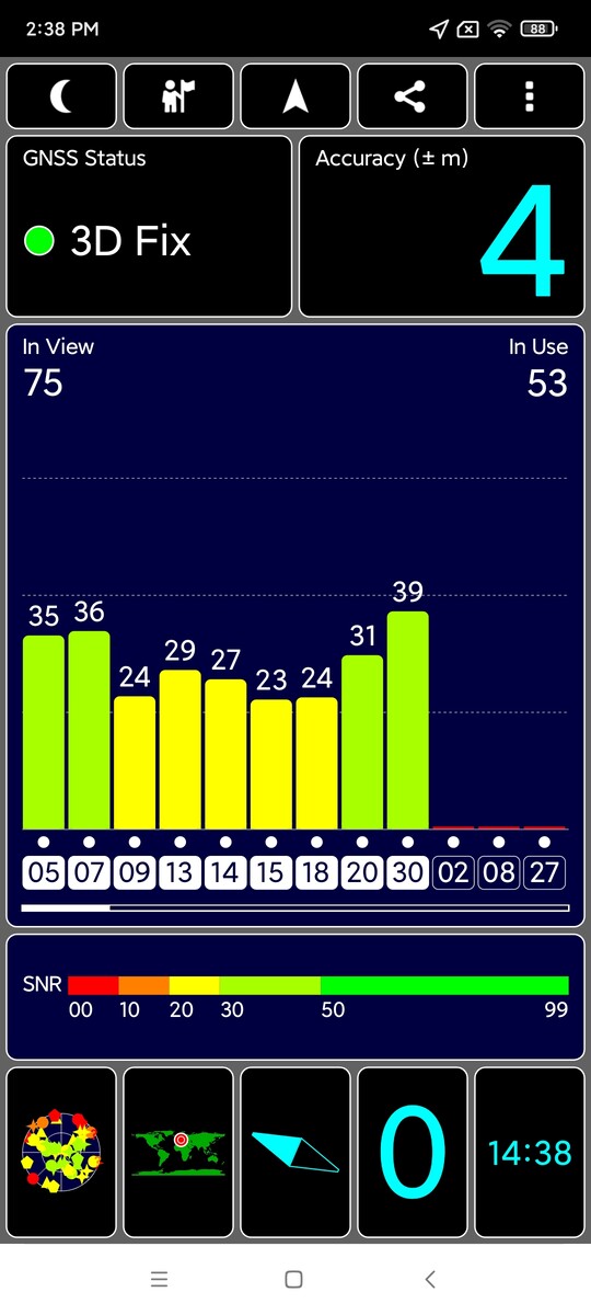 Mi 4, GPS (L1, L5), Glonass (L1), Galieo (E1, E5a), Beidou (B1, B1c, B2a) ve QZSS (L1, L5) uydu navigasyon sistemlerinin yardımıyla mevcut konumunu bulur. . Testimizde, 4 metreye (~13 ft) varan bir doğrulukla iç mekanlarda olduğu kadar dış mekanlarda da başarılıdır.