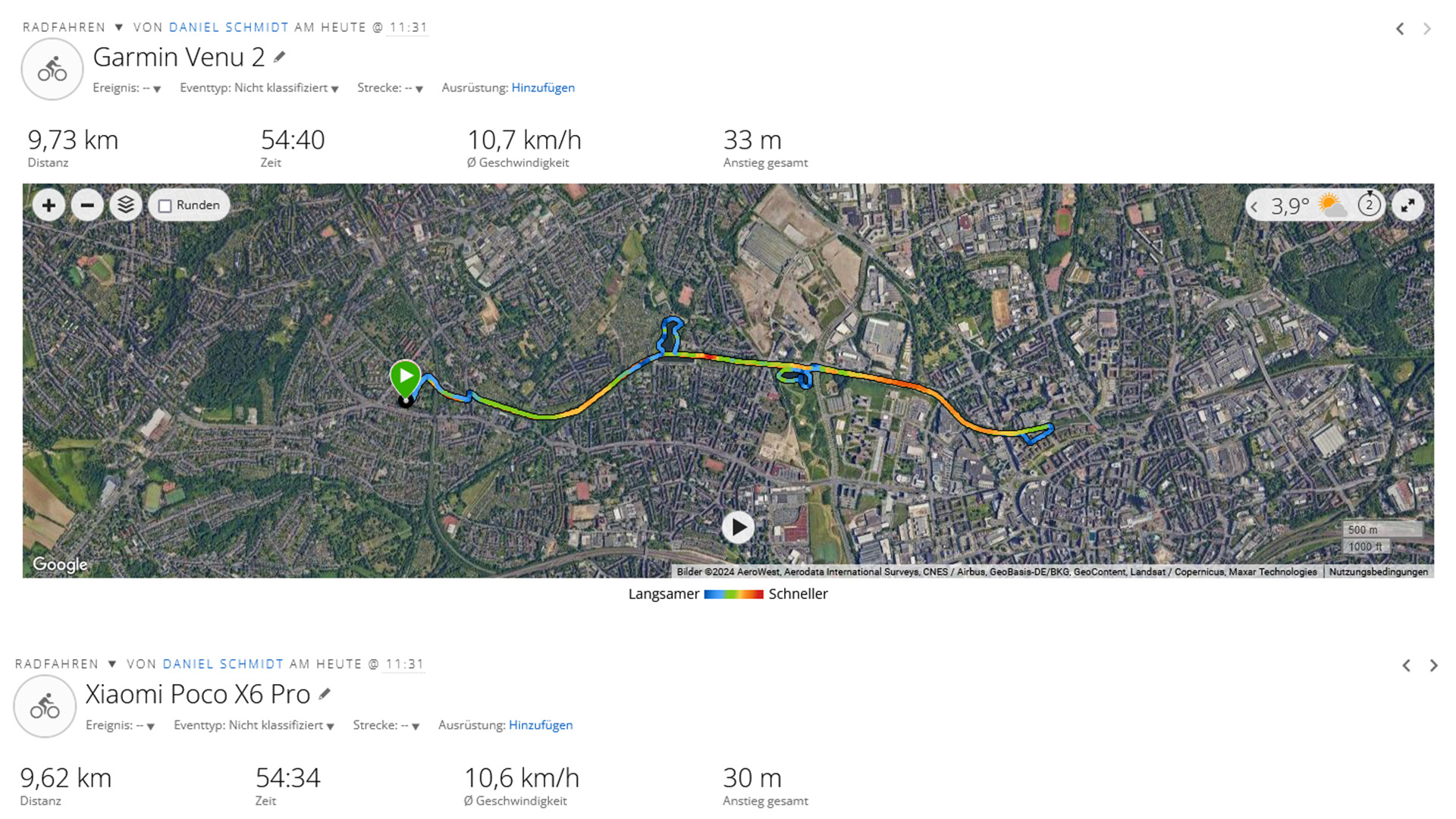 Uygulama testimizde, Poco X6 Pro'nun iyi bir navigasyon cihazı olduğu ortaya çıktı. Garmin Venu 2 fitness akıllı saati ile karşılaştırıldığında, 10 kilometrelik (~6,2 mil) test rotamızı neredeyse aynı doğrulukta kaydediyor, ancak zaman zaman bazı yoğun yerleşim alanlarında konum rotanın yanına kaydediliyor. Genel olarak, hassasiyet yüksek.