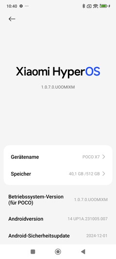 Poco X7, Xiaomi'nin Android 14 tabanlı HyperOS 1.0 kullanıcı arayüzünü kullanıyor. Bazı üçüncü taraf uygulamalar önceden yüklenmiş olarak geliyor ve 512 GB'lık test cihazımızdaki boş depolama alanını 472 GB'a düşürüyor. Can sıkıcı: Reklamlar zaman zaman dosya yöneticisi gibi sistem uygulamalarında görünür.