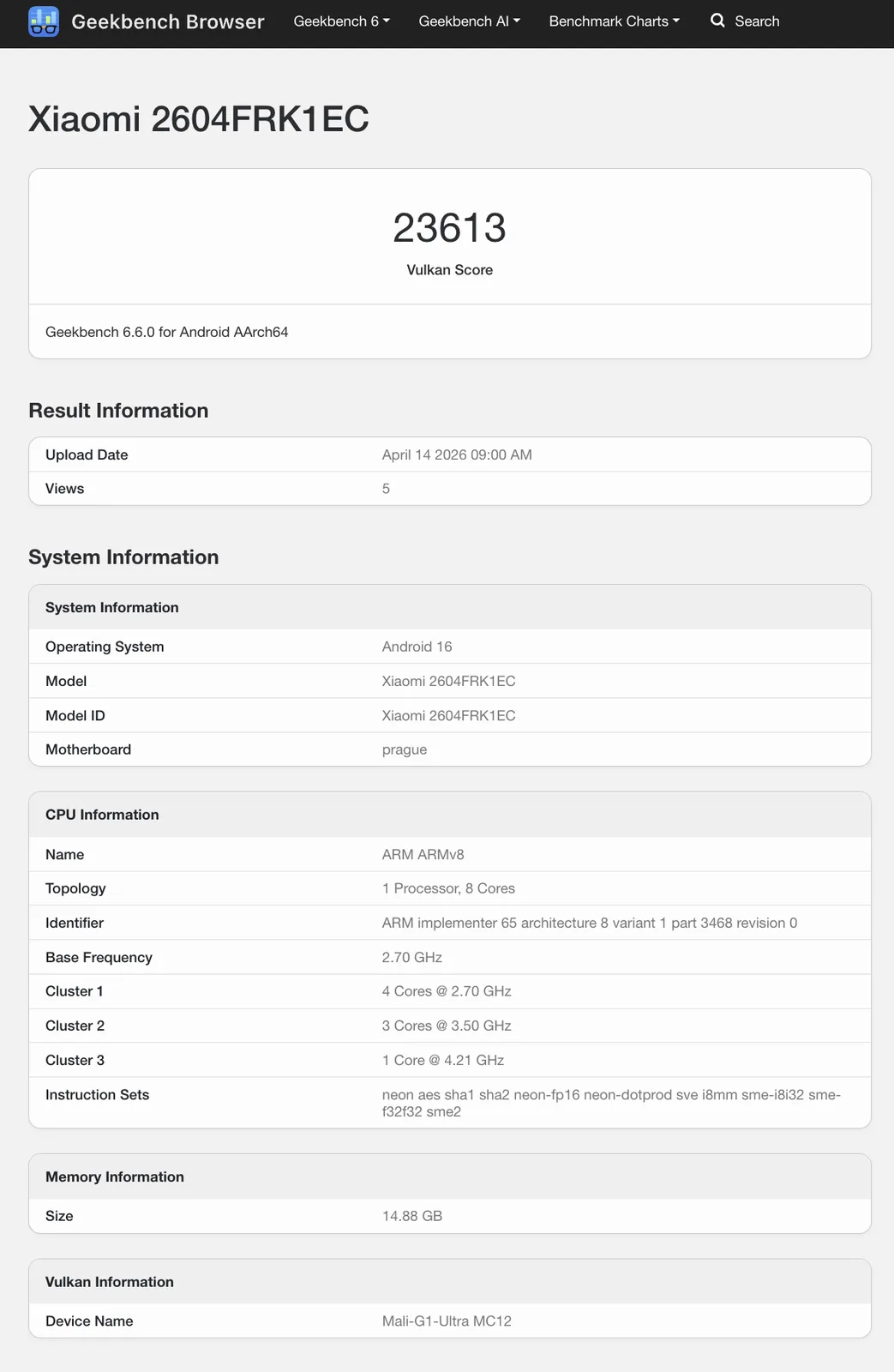 Bu arada, CPU performansı da bu cihazdan beklediklerimizle aynı seviyede Dimensity 9500 ve sekiz çekirdekli yonga seti. Bu nedenle Redmi K90 Max, aşağıdaki gibi modern amiral gemileri ile mücadele ediyor Galaxy S26 Ultra, Xiaomi 17 Ultra ve OnePlus 15 (Amazon'da 899 $). Geekbench, Xiaomi'nin Redmi K90 Max'i 16 GB'a kadar RAM ile de sunmayı planladığını gösteriyor.