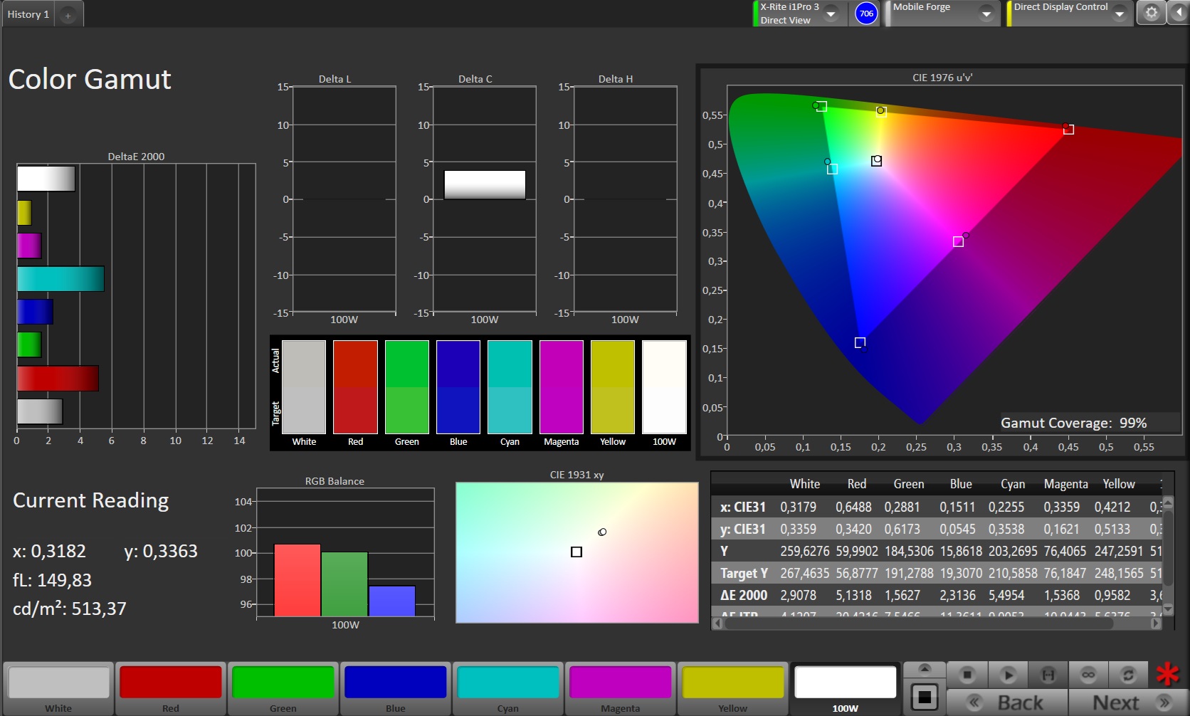 99% sRGB (Calman 2D)