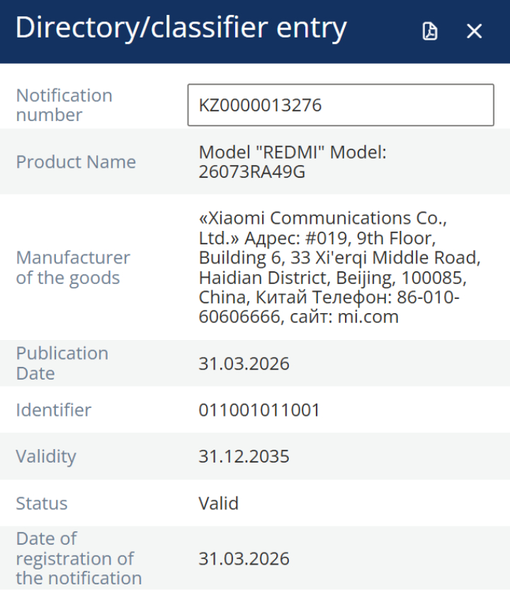 Bu nedenle, Xiaomi'nin 26073RA49G'yi bu yıl içinde piyasaya süreceğinden şüpheleniyoruz. Ek olarak, model numarası küresel bir cihaz olduğunu doğruluyor. Bunun da ötesinde, model numarası Xiaomi'nin cihazı Temmuz 2026 civarında bir kapasitede tanıtacağını gösteriyor.