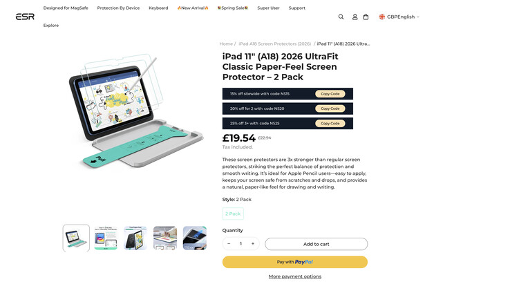 ESR Tech'e göreyenilenmiş giriş seviyesi iPad de neredeyse elimizin altında. Henüz Apple tarafından kamuya açık bir duyuru yapılmamış olmasına rağmen, ESR Tech şimdiden iPad 12. Nesil için 'kağıt hissi veren' ekran koruyucularının reklamını yapıyor. Yayınlandığı sırada hala çevrimiçi olsa da, ESR Tech'in listesini kaldırdığı zaman için görüntüleri aşağıya yerleştirdik.