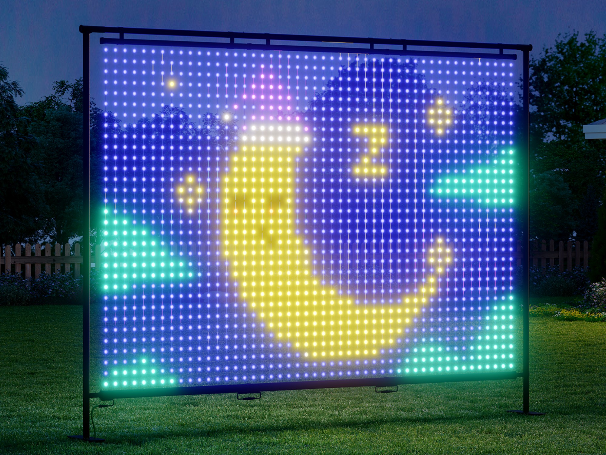 Govee Lightwall, 1.536 RGBIC LED'i hassas bir 32×48 piksel ızgarasına yerleştirerek sadece 1,96 inçlik bir piksel aralığı elde eder - sınıfındaki en yüksek yoğunluk. Sonuç, ister avlunun karşısından eksiksiz bir sahne görüntülesin ister yakından karmaşık ayrıntıları ortaya çıkarsın, kusursuz renk geçişlerine sahip olağanüstü keskin görüntülerdir. 35 FPS sinema sınıfı kare hızıyla desteklenen dinamik efektler akıcı ve gecikmesiz kalarak karmaşık animasyonlara pürüzsüz ve doğal hareketlerle hayat veriyor.