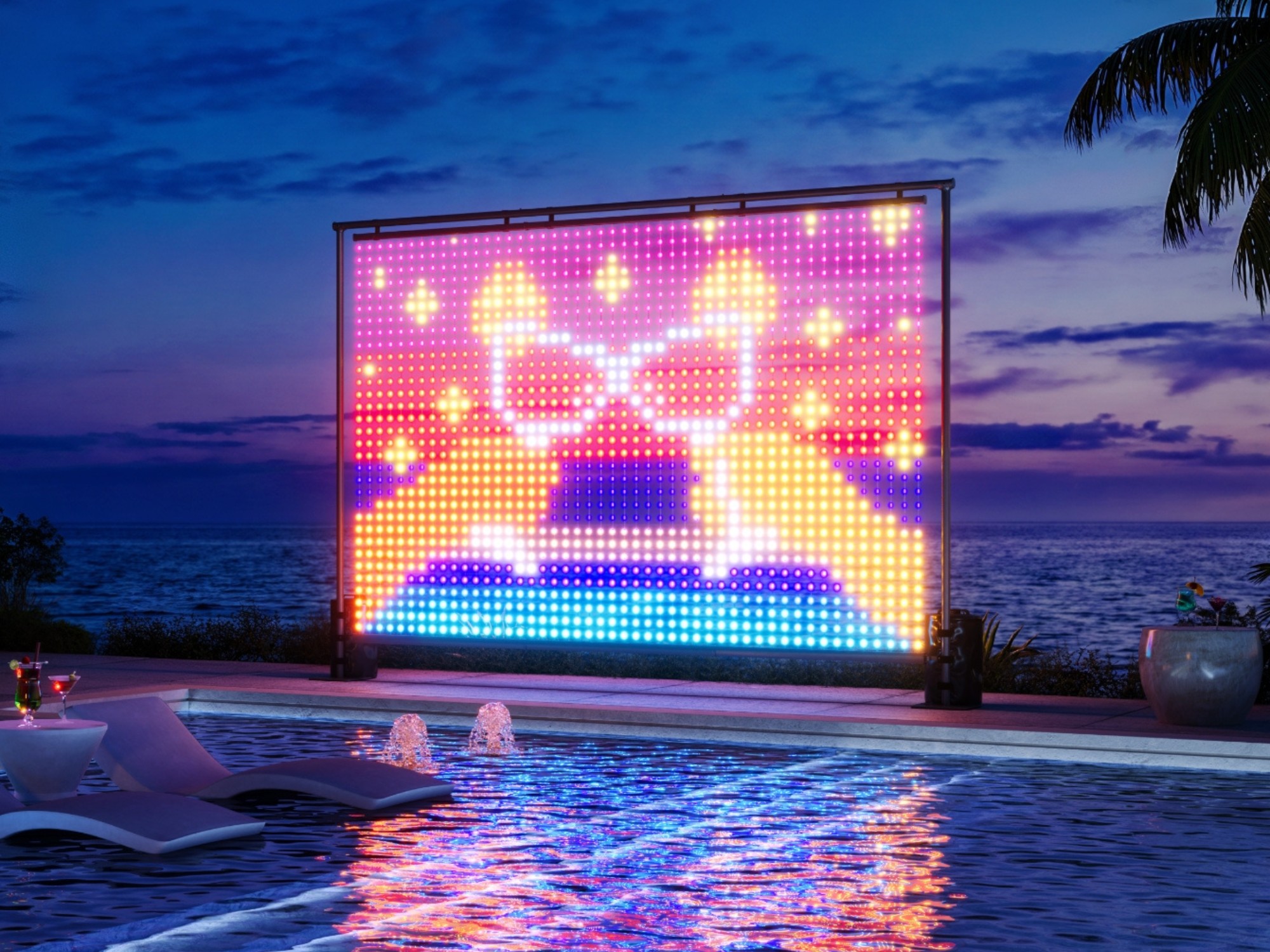 Perde Işıkları Pro'yu örnek alan duvar lambası, sıkıca paketlenmiş bir LED ampul yapılandırmasından yararlanmalıdır. Nesneleri yakın mesafeden bile fark edilebilir kılmak için 1,96 inç/5 cm'lik bir piksel aralığına sahiptir. Animasyonlu sahneler, perdeden ilham alan alternatifin 30 fps'sinden biraz daha yüksek olan 35 fps'de işleniyor.
