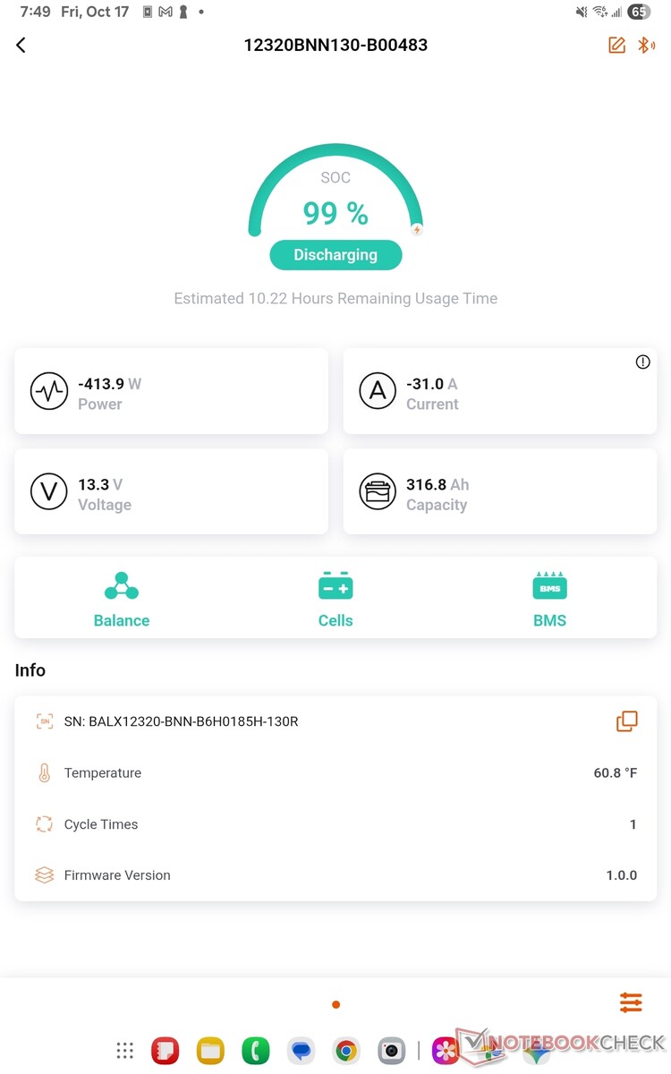 Bu akü için, testler büyük ölçüde bu akünün dış mekan/kamp uygulamalarına odaklandı ve geniş bir çalışma sıcaklığı aralığının yanı sıra invertörün önemli miktarda watt üretme kabiliyetine ilişkin iddialarını test etti. Ancak pratik testten önce, çeşitli yük boyutlarında bir amper pensi ile okumalar yaptık ve yerleşik BMS'nin uygulamaya doğru okumalar ve tahmini çalışma süresi sağladığını gördük.